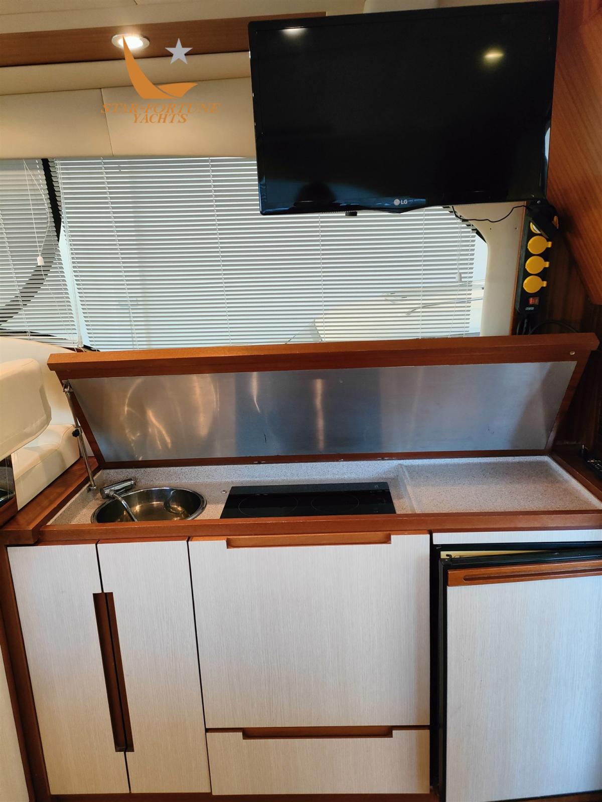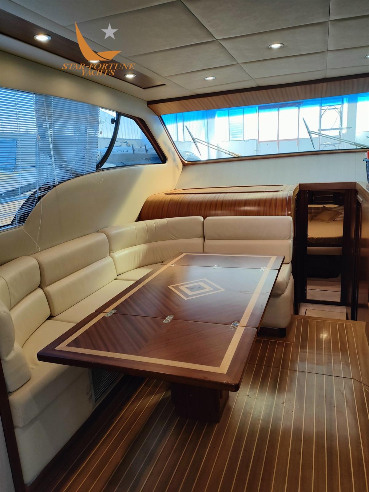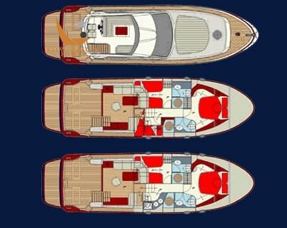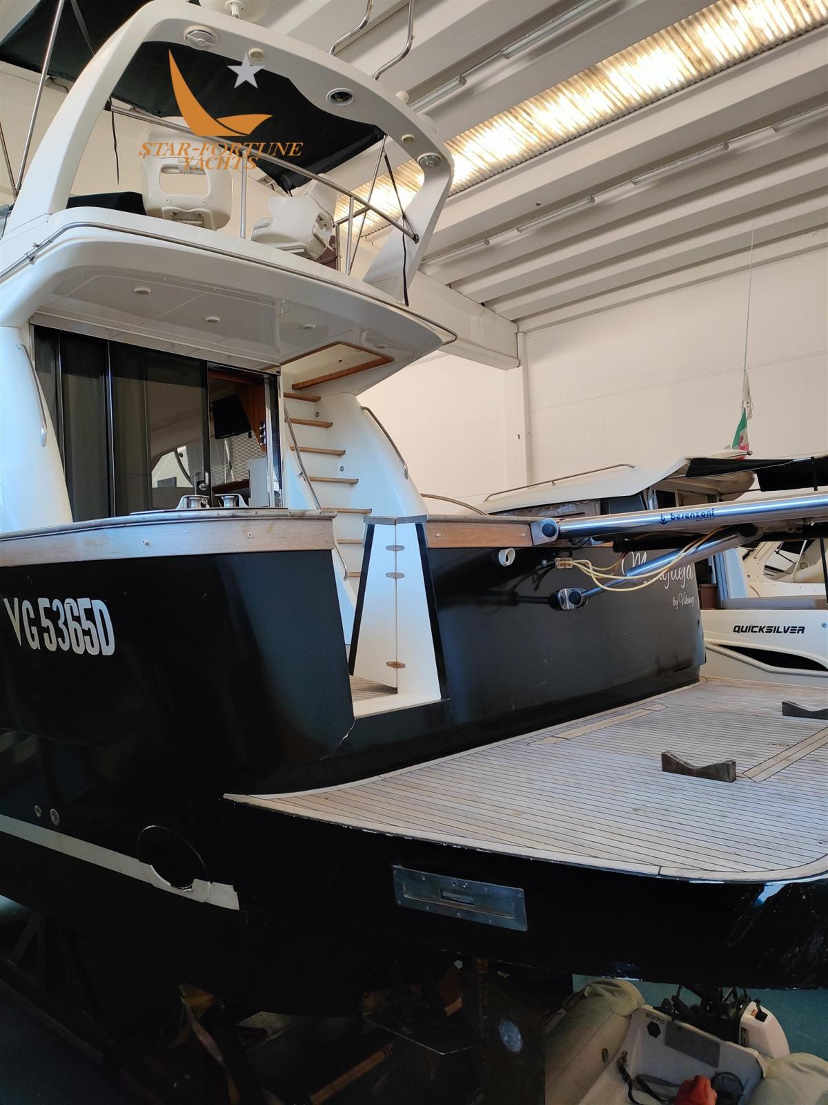 Ancre (in acciaio), Eau sous pression, Passavant en teck, Douche de cockpit, Double barre à roue, Flaps hydrauliques, Extincteur(s) fixe(s), Passerelle (idraulica), Plateforme arrière (da bagno porta tender), Pompe de cale automatique, Porte latérale, Cockpit en teck, Prise de quai, Guindeau électrique, Echelle de bain, Corne.