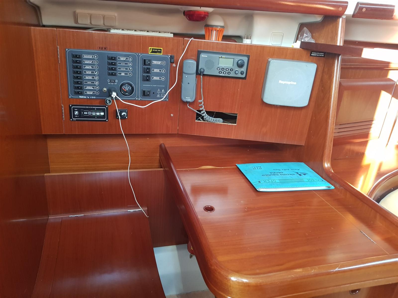 Indicateur d'angle de barre, Antenne radar, Compas (Plastimo), Moniteur, Sondeur pêche (Raymarine ST60), GPS (Raymarine RC 46+), Loch (Raymarine ST60), Lecteur de cartes (Raymarine RC 46+), Plotter GPS (Raymarine RC 46+), Radar (Raymarine RC 46+).
