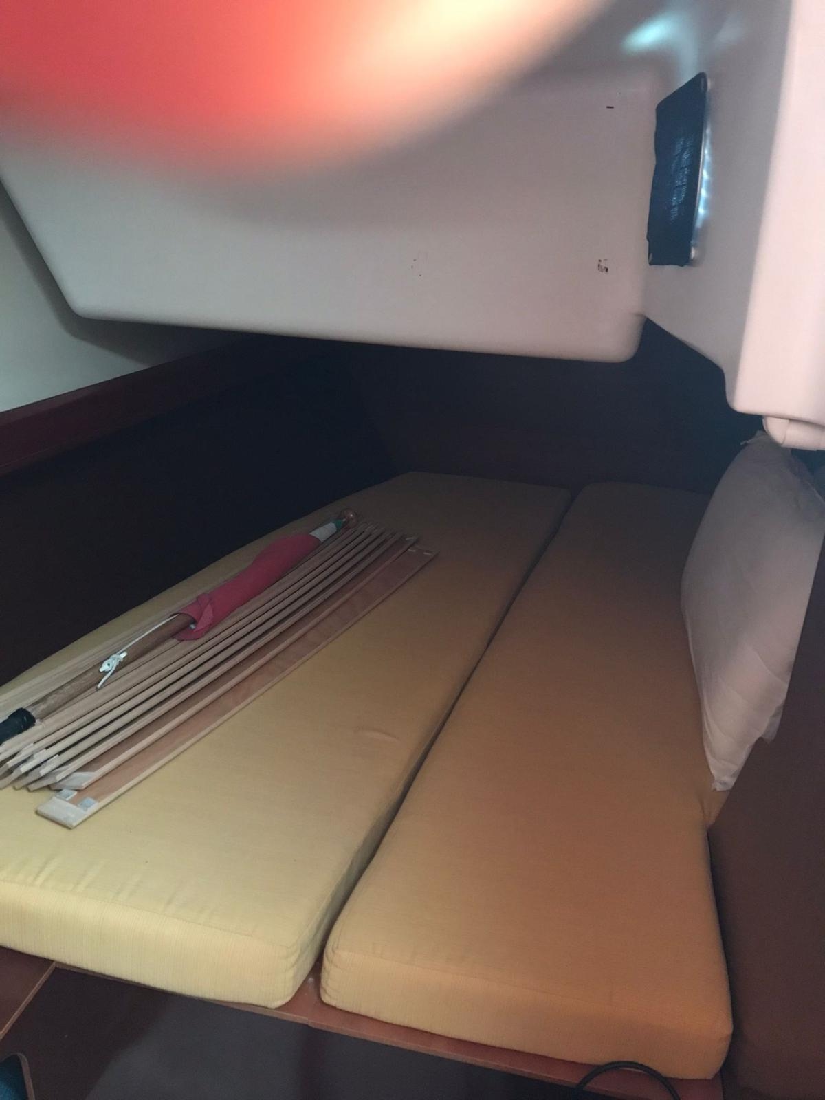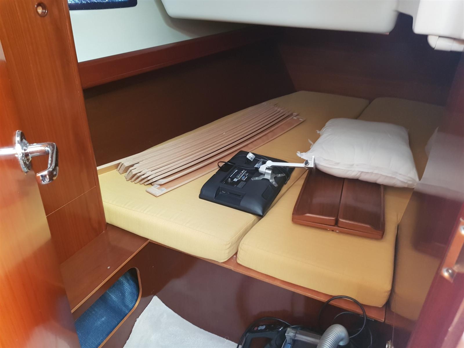 Alarme moteur, Eau sous pression, 3 Batteries (1 motore + 2 servizi), Douche de cockpit, Éclairage de courtoisie, Passerelle (legno/acciaio), Plateforme arrière, Pompe de cale manuelle, Prise de quai, Connexion eau sous pression à quai, Onduleur, Guindeau électrique, Gréement monotoron, Echelle de bain, Chaise support HB, table de cockpit, 4 Winch.