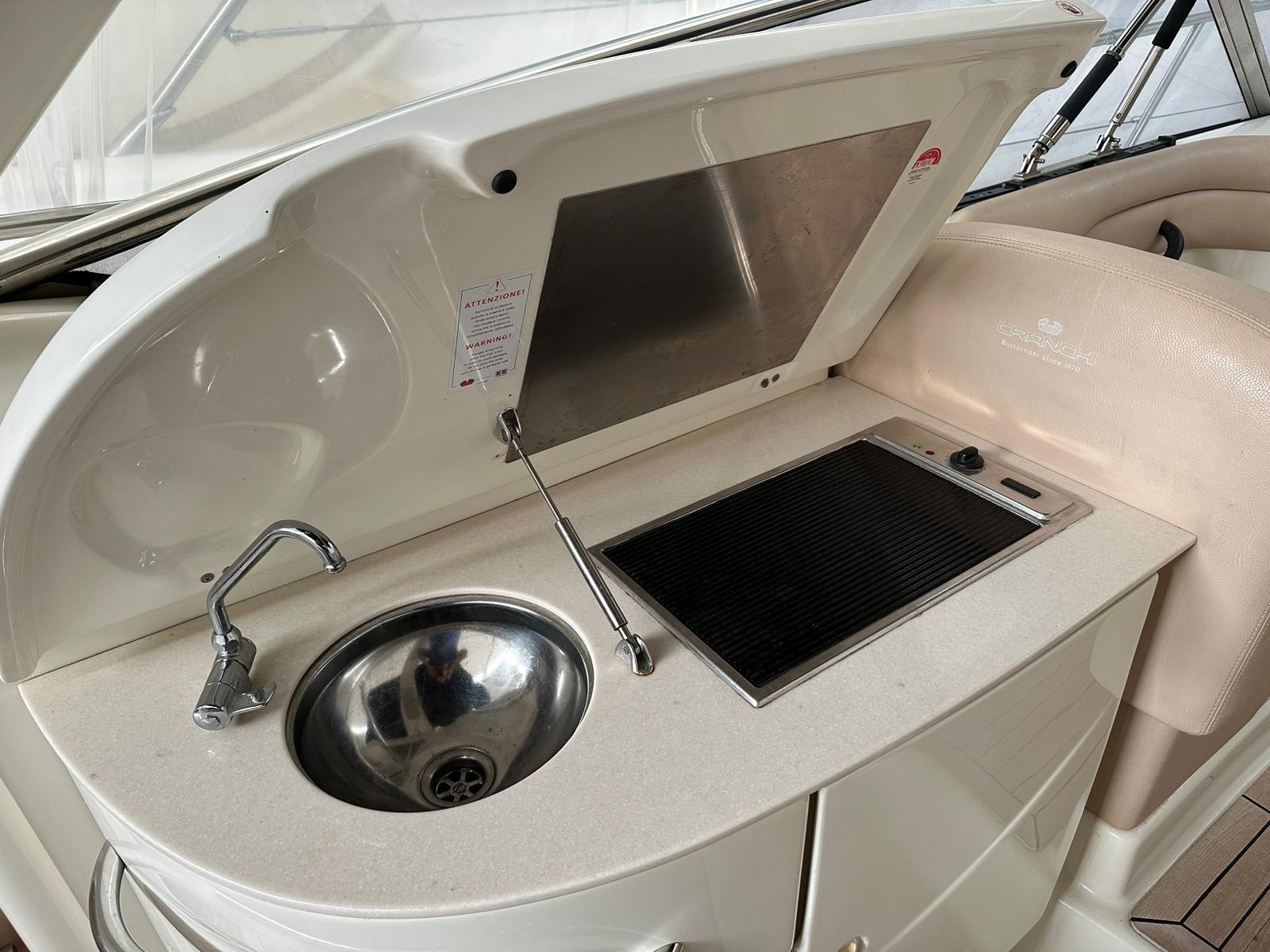 Alarme gaz, Alarme moteur, Alarme de pompe de cale, Eau sous pression, Douche de cockpit, Flaps hydrauliques, Garage à annexe, Éclairage de courtoisie, Passerelle (idraulica a scomparsa), Pompe de cale automatique, Prise de quai, Connexion eau sous pression à quai, Onduleur, Rollbar, Guindeau électrique, Echelle de bain, 2 table de cockpit.
