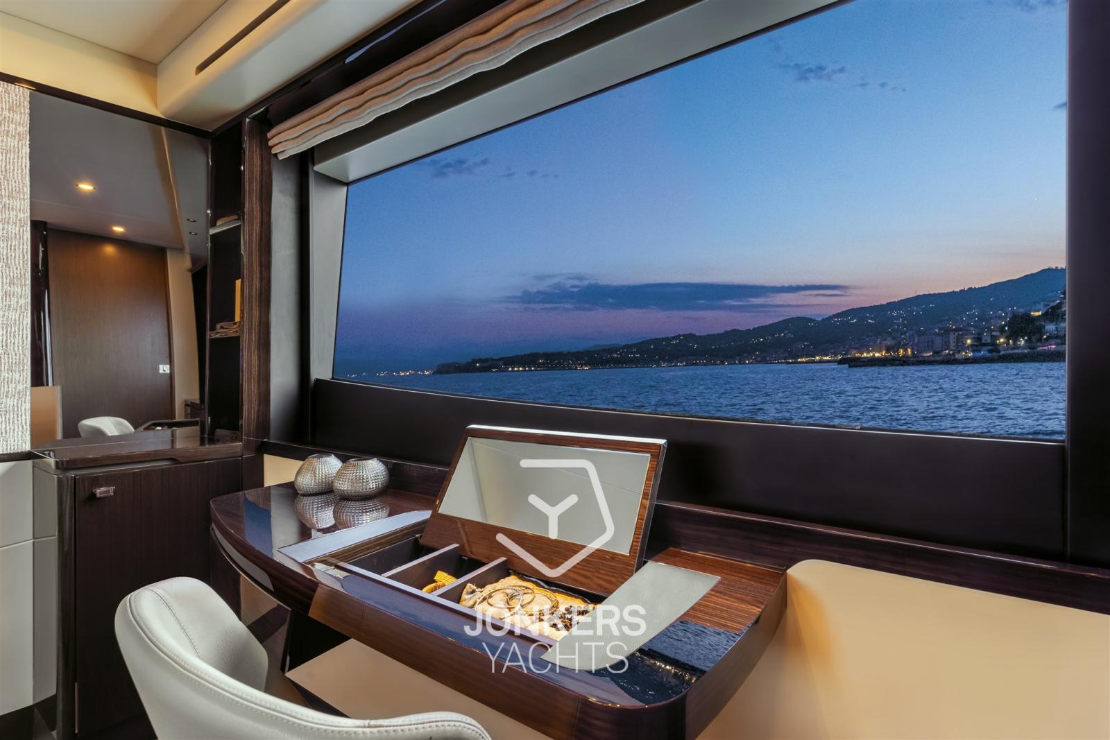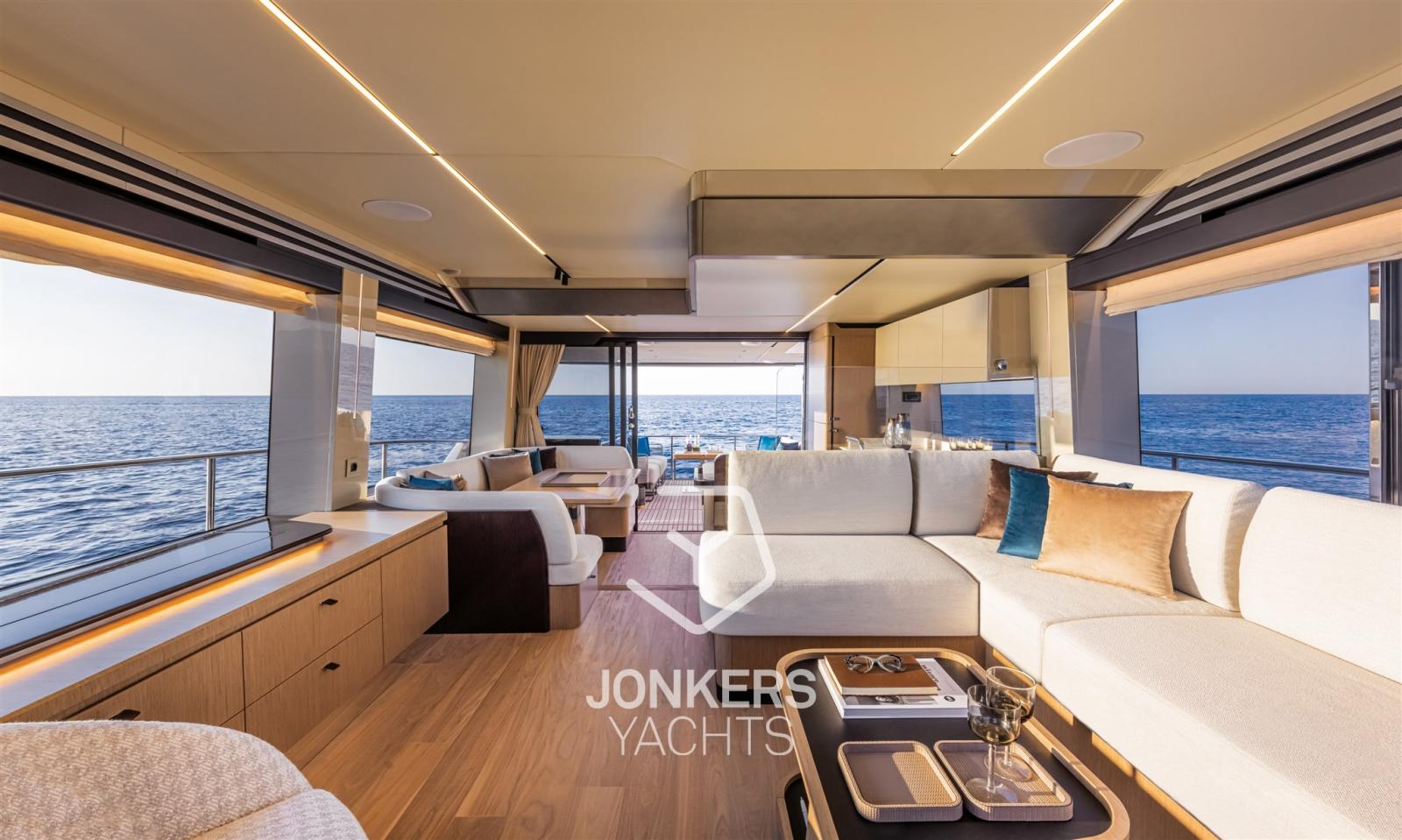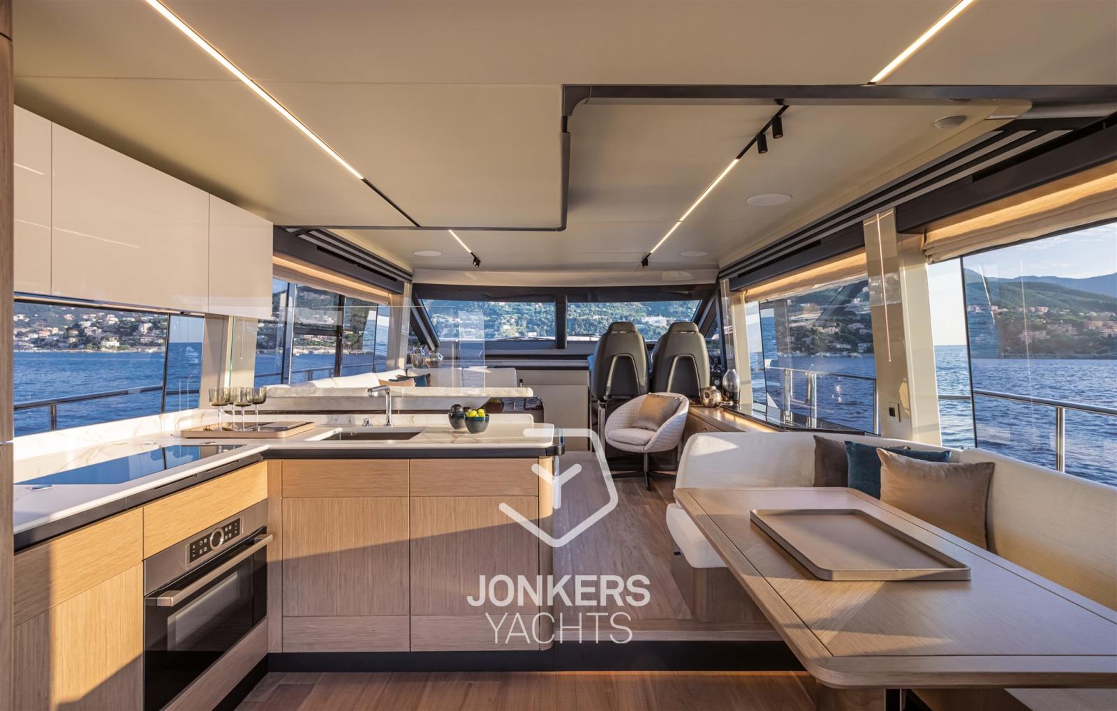 Les intérieurs sont conçus dans un souci de confort, sont élégamment meublés et agrémentés de matériaux nobles. Un design continu relie le salon, la cuisine et le cockpit. On a l’impression d’avoir des espaces vastes et illimités, enrichis par un éclairage moderne, des systèmes de divertissement, ainsi que par une climatisation ergonomique.