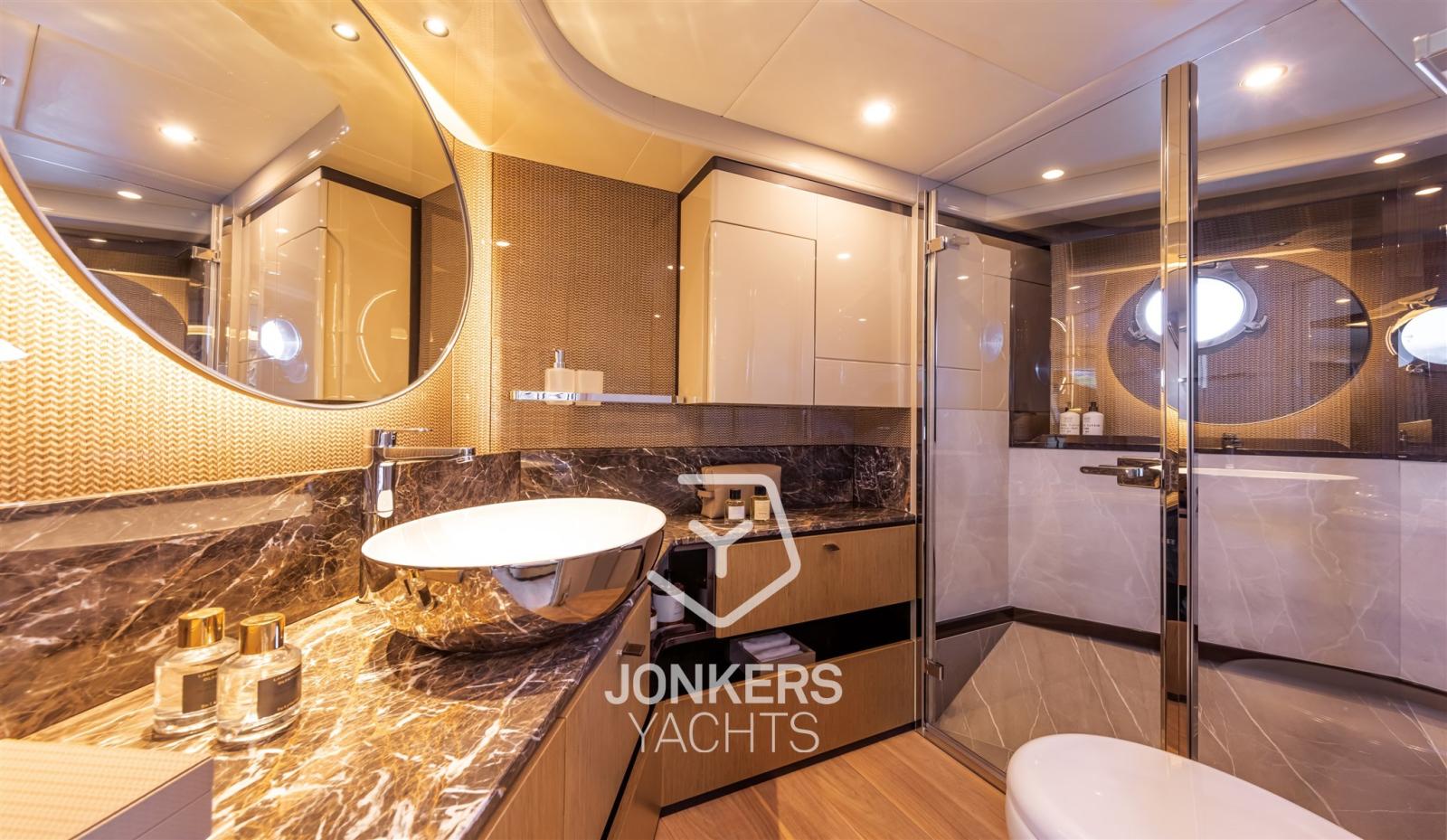 Même la zone de la proue ouvre de nouvelles perspectives grâce à la création d’un quartier d’armateur : une cabine pleine largeur. Surélevé et doté de hauts plafonds, il dispose d’un mobilier exclusif et de finitions élégantes. Son atmosphère raffinée et calme améliore le confort et l’intimité avec un grand dressing, une vanité avec vue sur la mer et de grandes fenêtres latérales pour se sentir entouré par la nature. La cabine VIP a toutes les caractéristiques de la cabine principale : ouverte, lumineuse, avec une salle de bain attenante, et de nombreuses pièces pour se sentir comme à la maison.
