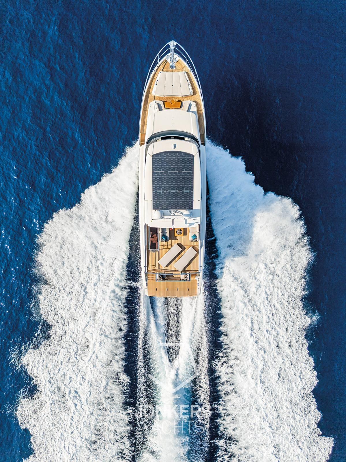 Les espaces extérieurs de ce yacht se distinguent par des lignes dynamiques et captivantes, avec un flybridge spacieux et redessiné et un cockpit terrasse confortable.