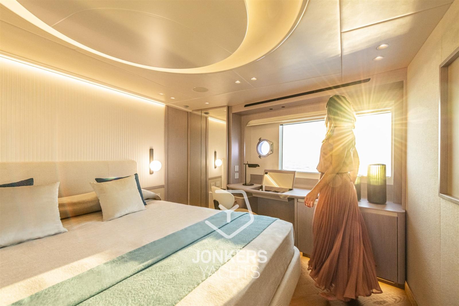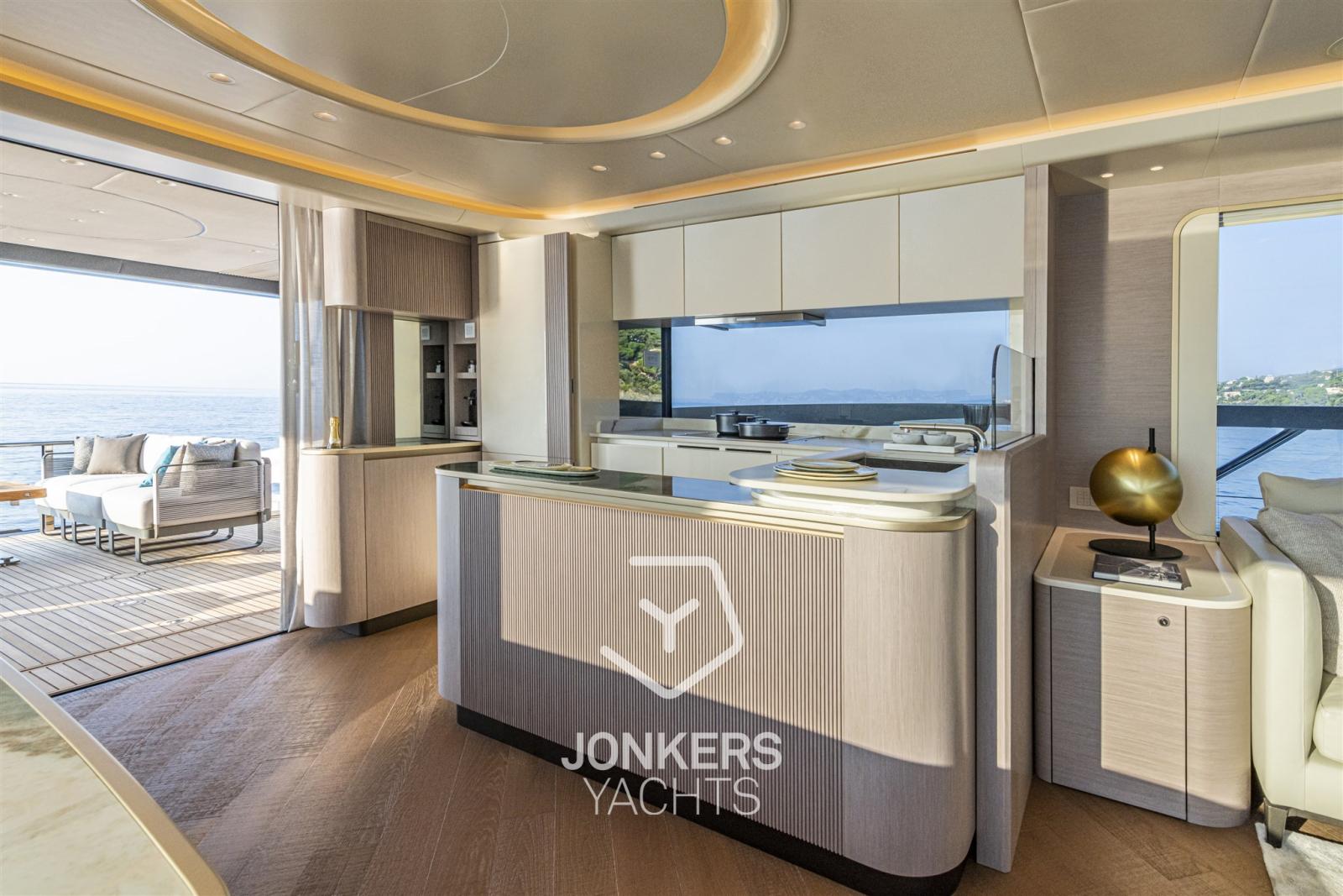 Ce yacht a également été conçu pour profiter d’une vue à 360 degrés sur la mer à bord, avec la perception d’être sur un navire aux volumes beaucoup plus importants. La cuisine spacieuse et le grand salon contribuent encore à l’impression d’espaces encore plus généreux.