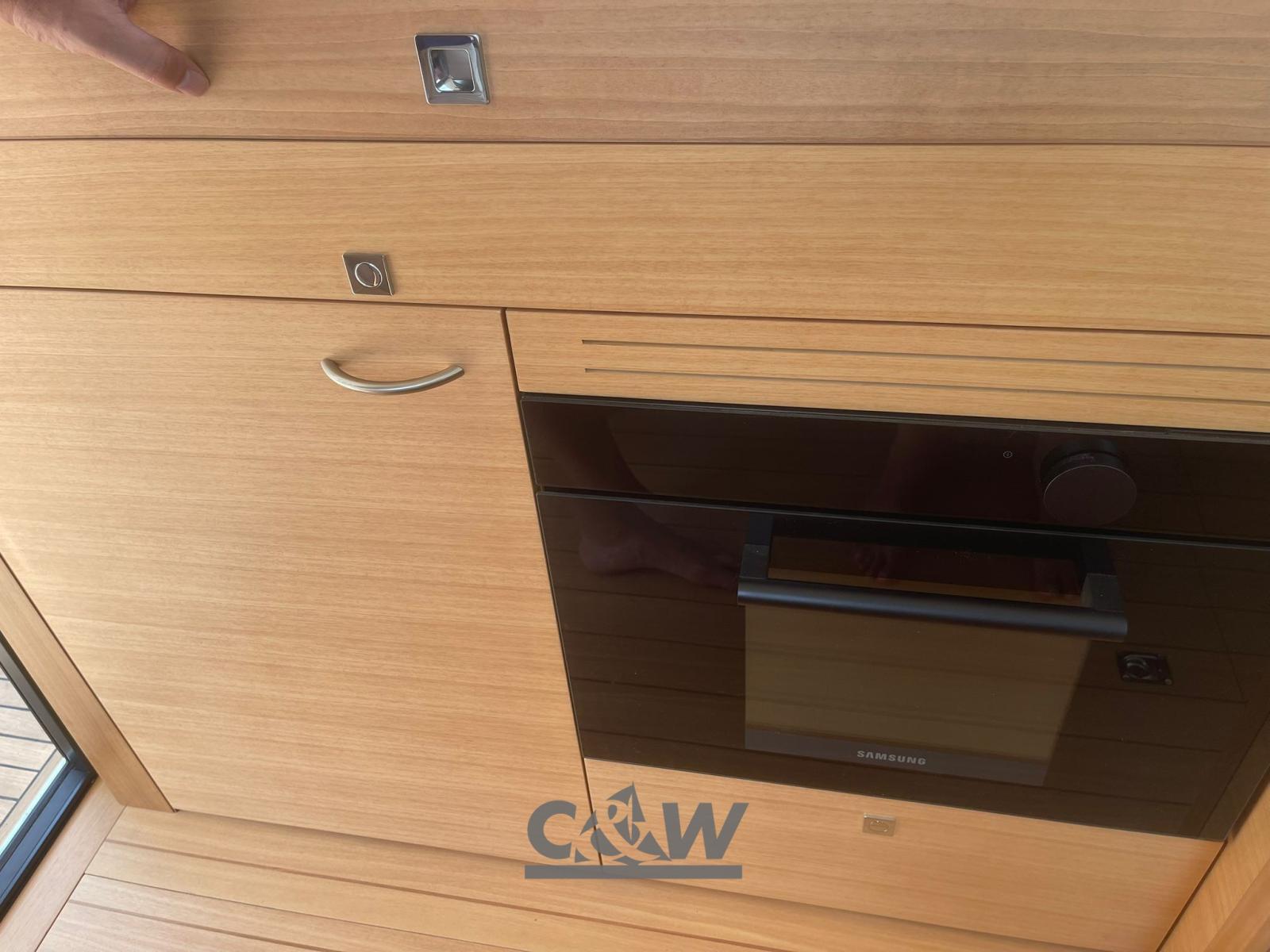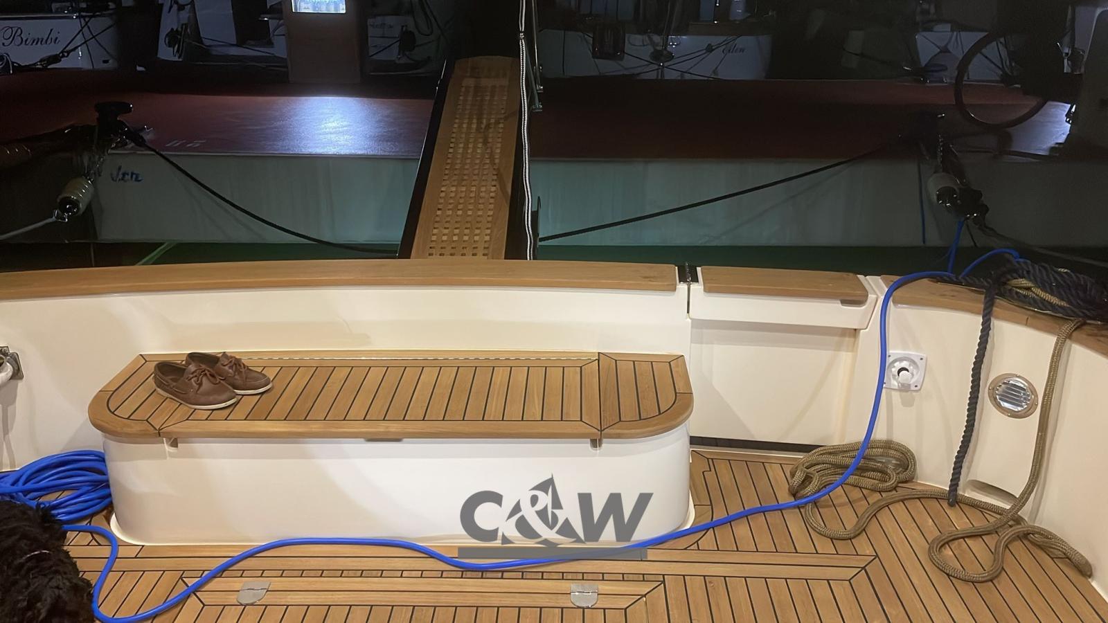 • Aménagement intérieur : Cabine principale – Cabine invités avec lits plats – Salle de bain avec douche séparée en mosaïque – Dinette convertible