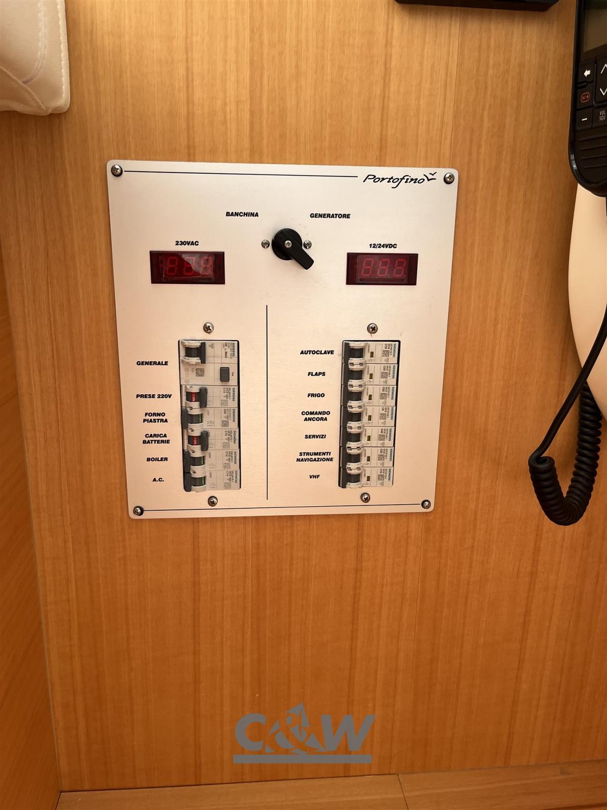 Commande électrique, 2 DSC VHF (plancia e fly), Pilote automatique (ST 70 plancia e fly), Plotter GPS (Raymarine Axiom 12 plancia + Axiom 9 su fly).