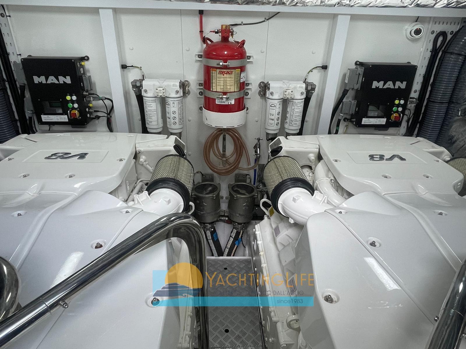 Alarme moteur, Alarme de pompe de cale, Ancre (con 60 mt catena), Eau sous pression, Passavant en teck, Douche de cockpit, Double barre à roue, Phare de poursuite, Flaps hydrauliques, Garage à annexe, Hard top, Extincteur(s) fixe(s), Indicateurs de flaps, Lavabo dans le cockpit, Éclairage de courtoisie, Spots sous-marins, Passerelle (idraulica telescopica 3.5mt), Plateforme arrière (idraulica), Pompe de Vidange du Réservoir d’Eaux Usées, Pompe de cale automatique, Pompe à Eau de Mer, Porte latérale, Cockpit en teck, Prise de quai, Guindeau électrique, Echelle de bain, Stabilisateurs (Seakeeper NG9), table de cockpit, Annexe, Corne, Winch électrique arrière.
