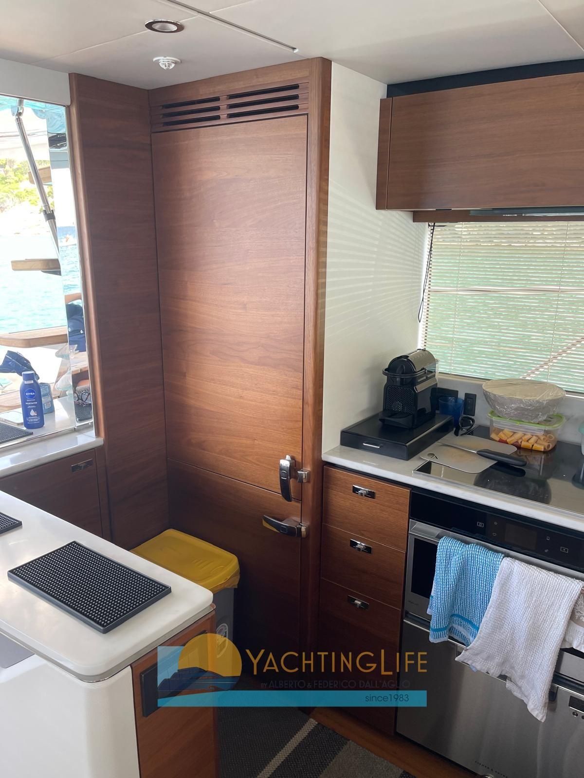 Location en cours - Intérieurs en noyer avec finitions satinées - Mise à niveau du plancher en bois dans le salon et la console - Mise à niveau du dessus de la cuisine en blanc de Carrare - Mise à niveau des canapés du salon, de la dinette et de la cabine propriétaire en cuir - Revêtement de sol Sportbridge en teck - Table basse en teck à l’avant - Auvent électrique pour le cockpit, couleur grise - Troisième poste de contrôle dans le cockpit - Mise à niveau du pack d’éclairage extérieur avec des lumières supplémentaires sur les passages latéraux et la poupe - Caméras dans la salle des machines et dans le cockpit - Moustiquaires dans tous les hublots ouvrants - Housses extérieures en toile grise - Bimini en toile grise avec mise à niveau de la lumière réglable - Cockpit, double toit sport et coussins d’étrave en Comfort Exterior III Vogue