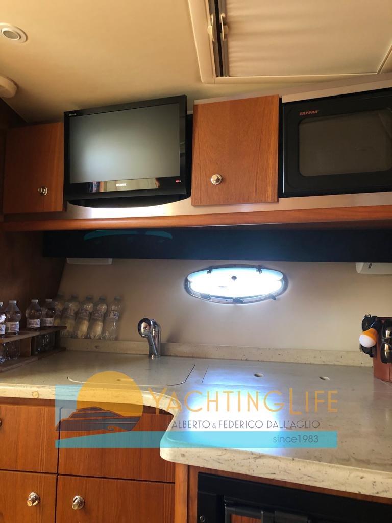 Alarme gaz, Alarme moteur, Eau sous pression, Batteries (Motori 2022 servizi 2024), Douche de cockpit, Flaps électriques (interceptor 2022), Hard top, Extincteur(s) fixe(s), Indicateurs de flaps, Éclairage de courtoisie, Plateforme arrière, Pompe de cale automatique, Prise de quai, Guindeau électrique, Echelle de bain, Corne.