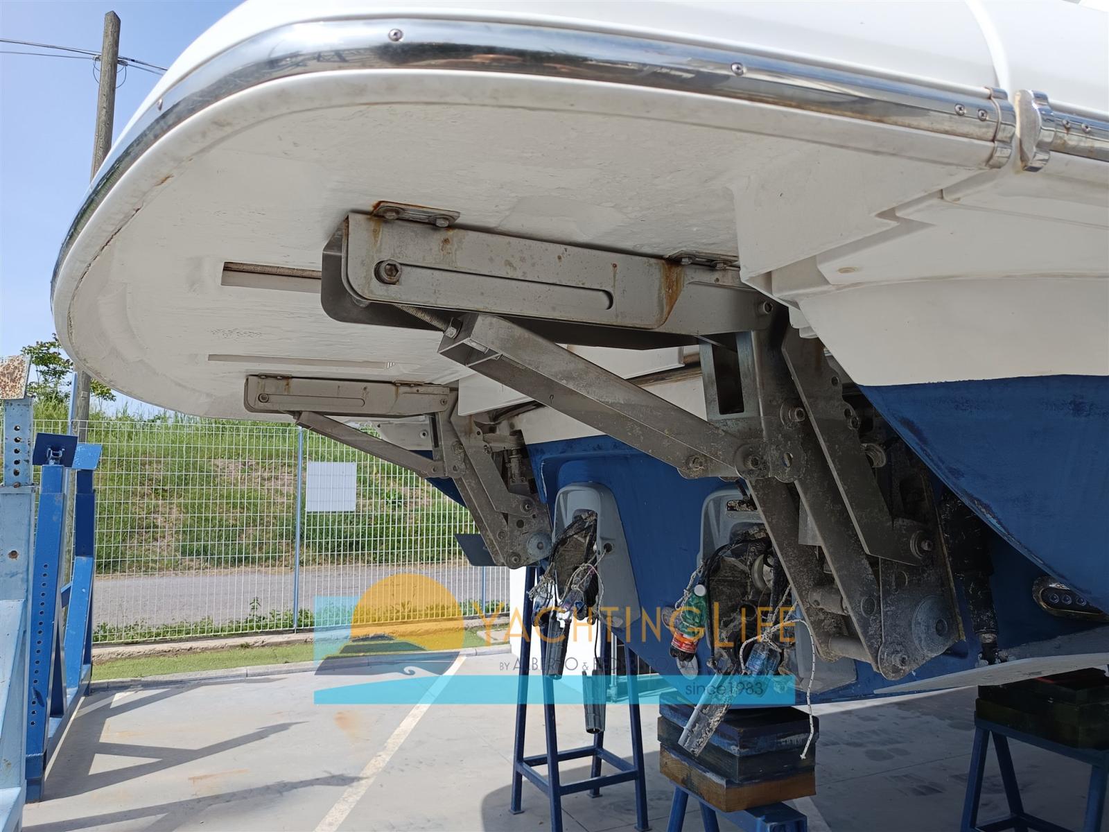 Alarme moteur, Ouverture du compartiment moteur électrique, Eau sous pression, Radeau de sauvetage (8p), 6 Batteries, Douche de cockpit, Flaps électriques, Hard top, Lavabo dans le cockpit, Éclairage de courtoisie, Spots sous-marins, Moteur d'annexe (Yamaha 8hp), Passerelle (Idraulica), Plateforme arrière (Tenderlift), Pompe de cale automatique, Porte latérale, Prise de quai, Onduleur, Guindeau électrique, Echelle de bain, Annexe (Arimar 250 e motore 8hp), Corne.