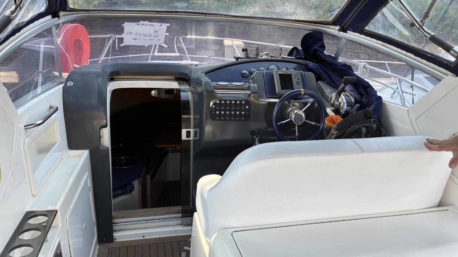 FAETON 29 SCAPE de 2007, motorisé en MERCRUISER 350 MAG MPI Essence, 1 cabine, 1 salle de bain, cuisine, circuit 220V refait en 2021 avec chargeur, GPS GARMIN, dernière révision 07/2025... REPRISE, FINANCEMENT ET PLACE DE PORT. Contact Jean Jacques : 06 21 67 50 29