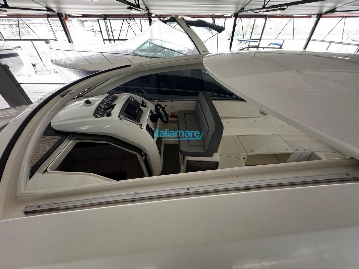 Alarme de pompe de cale, Eau sous pression, Radeau de sauvetage (Eurovinil 6 Places), 4 Batteries, Douche de cockpit, Flaps électriques, Hard top, Indicateurs de flaps, Éclairage de courtoisie, Spots sous-marins, Plateforme arrière (MAGGIORATA), Pompe de cale automatique, Pompe de cale manuelle, Cockpit en teck (FLEXITEAK), Prise de quai, Guindeau électrique, Echelle de bain, table de cockpit.
