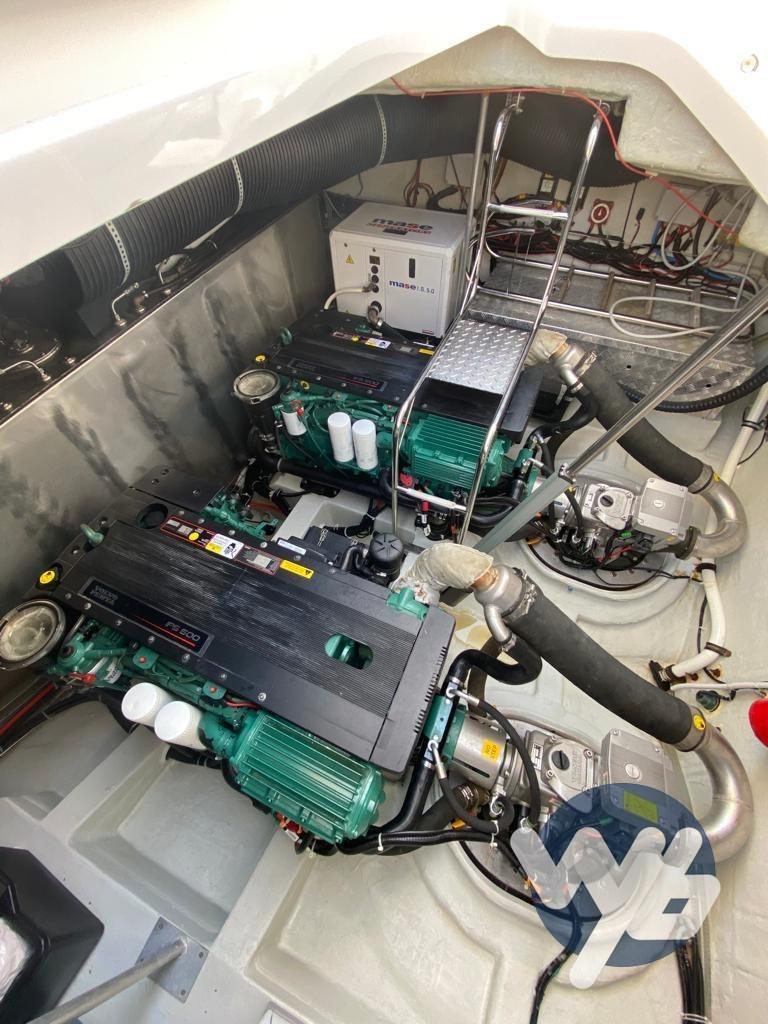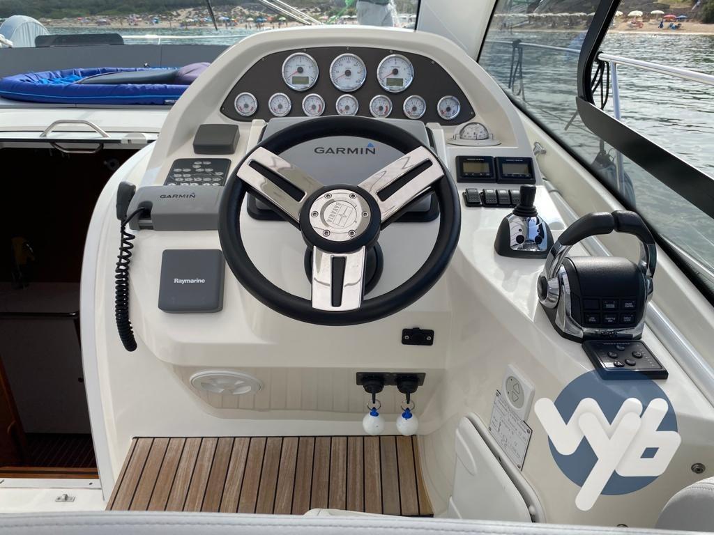 Alarme moteur, Alarme de pompe de cale, Eau sous pression, Câble d’alimentation à quai, Douche de cockpit, Extincteur(s) fixe(s), Passerelle, Plateforme arrière, Pompe de cale manuelle, Cockpit en teck, Prise de quai, Rollbar, Guindeau électrique, Echelle de bain, Annexe.