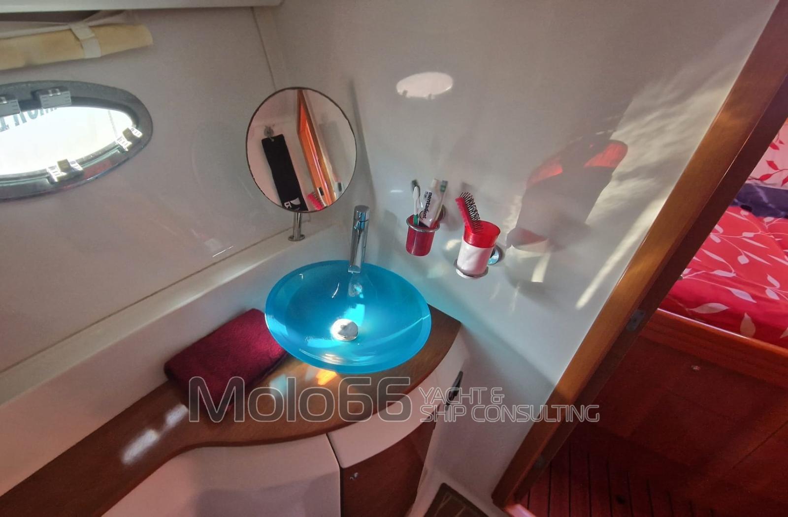 Alarme moteur, Alarme de pompe de cale, Eau sous pression, Couleur spéciale (Rosso Rubino 2025), Douche de cockpit, Flaps électriques (VOLVO), Hard top, Extincteur(s) fixe(s), Éclairage de courtoisie, Plateforme arrière, Pompe de cale automatique, Porte latérale, Cockpit en teck, Connexion eau sous pression à quai, Onduleur, Guindeau électrique, Echelle de bain, Corne.