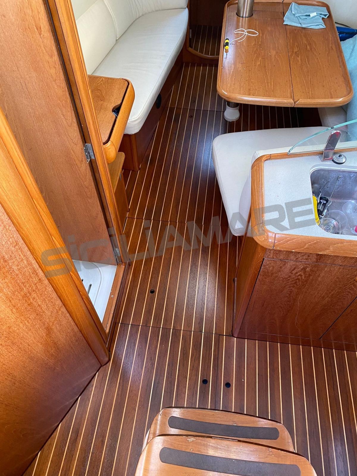 Alarme moteur, Eau sous pression, 3 Batteries (motore + 2 servizi), Douche de cockpit, Passerelle, Pompe de cale automatique, Pompe de cale manuelle, Cockpit en teck, Prise de quai, Guindeau électrique (1000w), Gréement monotoron, Echelle de bain, Annexe (2,10 del 2017 + FB 4 cv), 4 Winch (Harken).