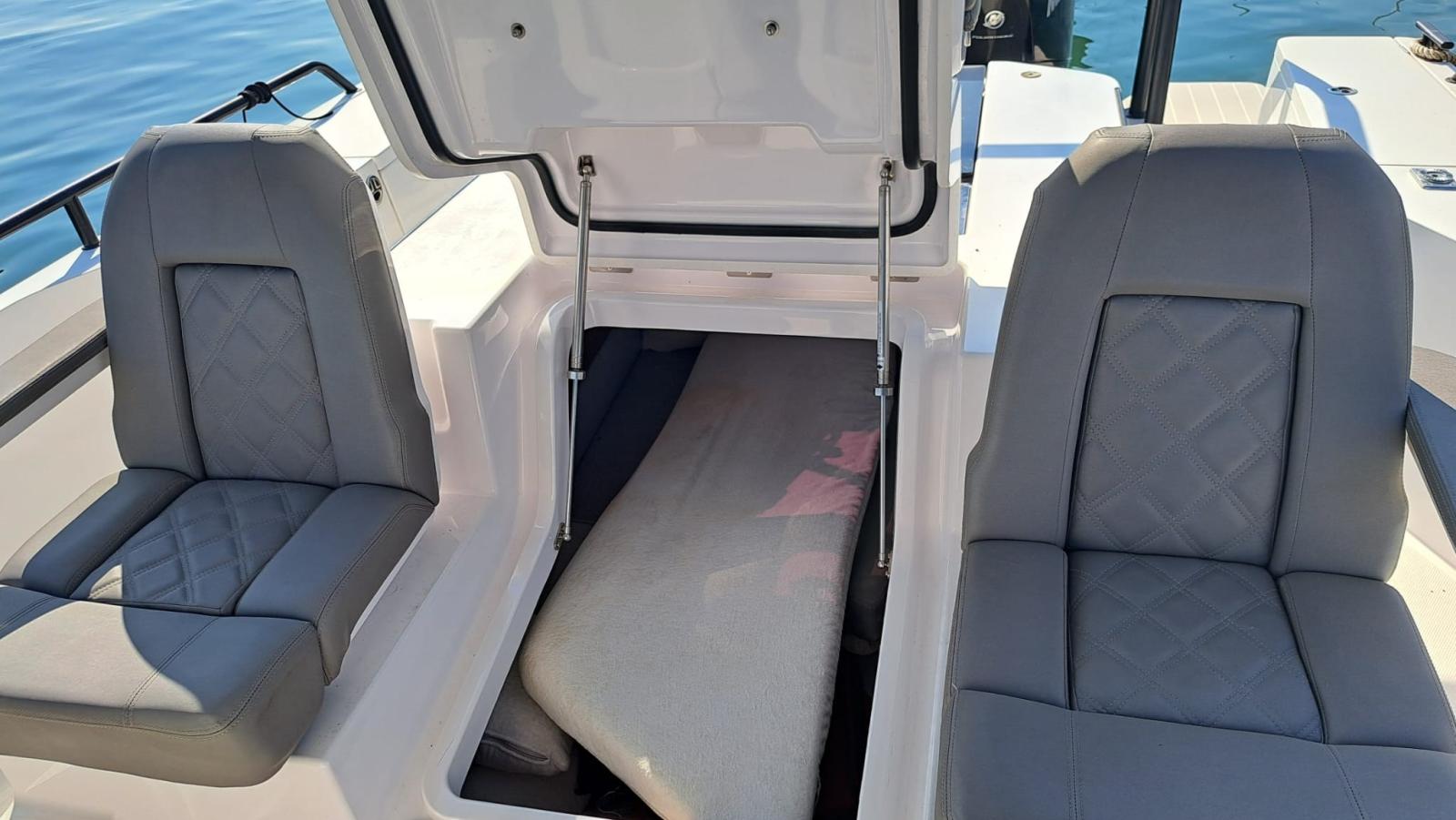 Eau sous pression, Trim hydraulique, Douche de cockpit, Flaps électriques, Lavabo dans le cockpit, Éclairage de courtoisie, Défenses, Pompe de cale automatique, Pompe de cale manuelle, Prise de quai, Guindeau électrique, Echelle de bain, Corne, T-Top.