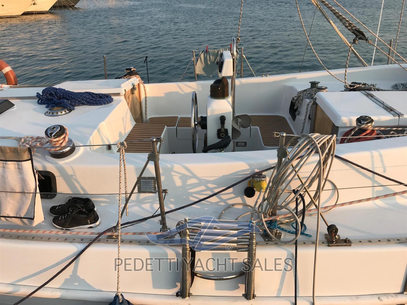 Douche de cockpit, Passerelle, Pompe de cale manuelle, Cockpit en teck, Guindeau électrique, Echelle de bain, table de cockpit, Annexe.