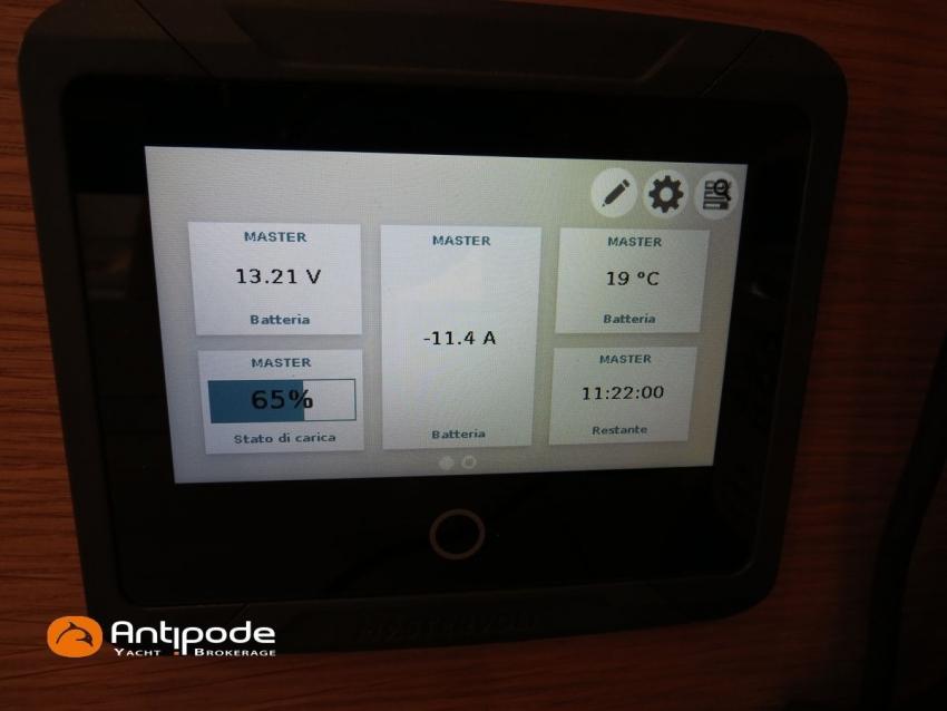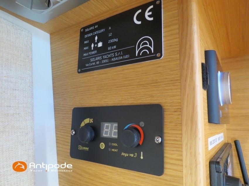 SOLARIS 44, 2023, 1ère main, Volvo D2-75, 75 cv (311 h), Propulseur d'étrave, Version d'aménagement intérieur 1 cabine avant, 2 cabines arrière, Soute à voile dans le poste avant, 2 cabinets de toilettes et douche, Menuiseries intérieures Chêne clair, Placards haut supplémentaires dans la cabine propriétaire, Finition intérieure Pack Prestige, Plan de travail en Corian dans la cuisine, Matelas marin 7 zones dans la cabine propriétaire, Hublots de coque supplémentaires dans la cabine avant, Hublots ouvrants supplémentaires dans les cabines arrière, 2 winchs supplémentaires pour écoutes de génois dans le cockpit - Harken Performa 50, 4 winchs électriques 2 vitesses - Harken Performa 50, Rail d'écoute de grand-voile dans le cockpit sous le pont, Delphinière carbone, Taquets d'amarrage rétractables, Cales pieds amovibles en teck, Fond de cockpit latté teck, Assises de cockpit lattées teck, Plage arrière lattée teck, basculante sur palan, Table de cockpit avec abattants bois, Housse de table de cockpit, Double barres à roue carbone, Housses de barre à roue, 2 consoles de barres, Capote de roof, Coussins de cockpit, Guindeau électrique avec télécommande filaire + commande au poste de barre tribord, Ouvertures latérales dans les filières, Mât carbone avec mast jack - All Spars, Spots led dans les barres de flêche et la bôme, Bôme carbone - All Spars, Halebas carbone - All Spars, Pack hydraulique pour pataras - Bamar, GV en DFI, 3 bande de ris , coulisseaux sur rail Harken type Switch , Génois sur enrouleur en DFI, Trinquette sur emmagasineur Karver avec drisse mouflée , Gréement de spi asymétrique, Code 0 sur emmagasineur Karver, Spinnaker asymétrique, Chaussette à spi, Gréement courant Dyneema, Pataras textile, Pilote automatique in board - B&G H5000, Télécommande à distance du pilote, Centrale de navigation B&G H5000 avec compas Precision 9, Anémomètre HR sur perche verticale, Répétiteurs cockpit - B&G 20/20 et Triton2, Répétiteurs en pied de mât - 3 écrans - B&G 20/20, GPS / lecteur de carte à la table à carte - B&G Zeus3S 9, 2 x GPS / lecteur de carte dans le cockpit - B&G Zeus3S 9, Cartographie électronique, Transpondeur AIS (émetteur récepteur) - B&G Nais 500, VHF ASN à la table à carte + combiné déporté - B&G V60, Corne de brume électrique, Système audio Fusion RA770, Hauts-parleurs cockpit (radio CD), Balise de détresse, Unité réfrigérante 12 V ouverture par le dessus, 2 ème unité réfrigérante porte frontale, Gazinière 3 feux + four, Prise de quai 220 V + chargeur de batteries Mastervolt 12/75, Batteries service parc Lithium 400Amp, Convertisseur 12 V / 220 V 2000W - Mastervolt, Contrôleur / gestionnaire de batteries, Climatisation intégrée réversible - Climma, Dessalinisateur 12 V - 100l/h, 2 x Réservoirs rigides eaux noires, 2 x WC électrique, Douchette de cockpit eau chaude / eau froide, Feux de navigations à Leds, Eclairages intérieurs à Leds, Mouillage principal ancre DELTA 25kg et 60m de chaine, Amarres et défenses, Bateau de propriétaire, jamais loué, Visible Bretagne. Pour plus d'informations ou pour fixer un rendez-vous de visite, contact : Jean-Baptiste Lemaire 06 10 25 00 03 - [email protected]