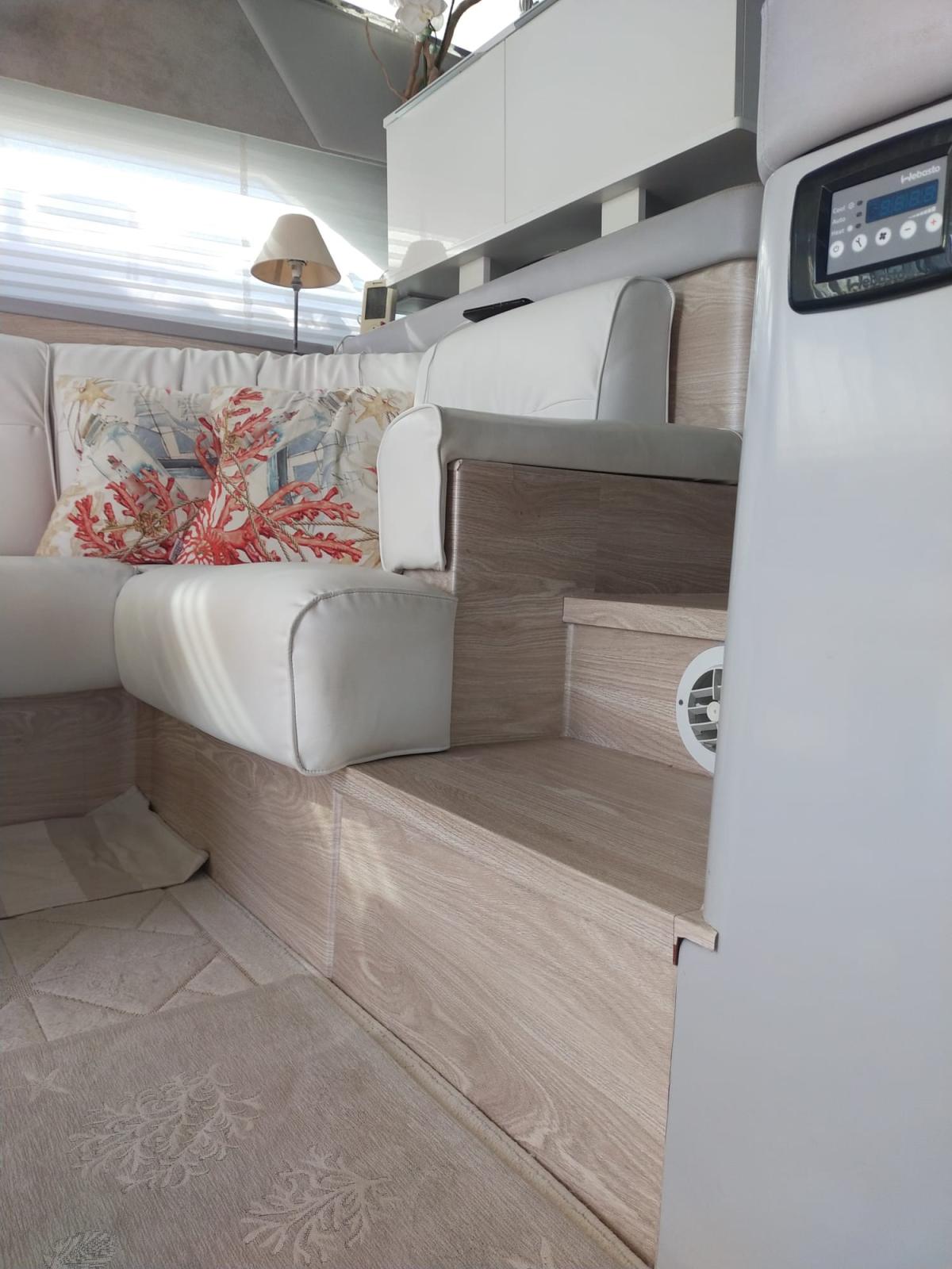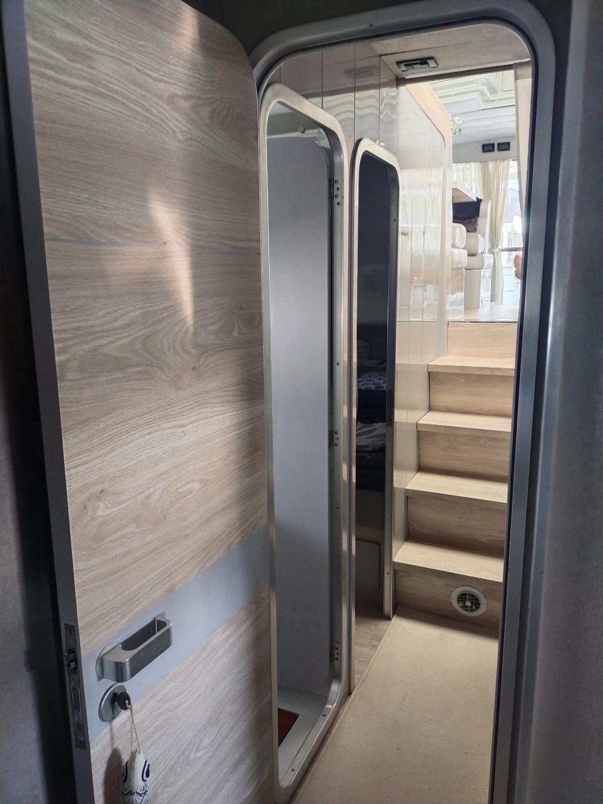 Alarme moteur, Eau sous pression, Câble d’alimentation à quai, Douche de cockpit, Double barre à roue, Passerelle (nuova 2024), Plateforme arrière, Prise de quai, Connexion eau sous pression à quai, Guindeau Hydraulique, Echelle de bain.