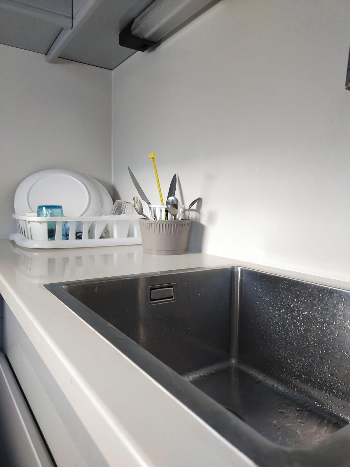 Nouvelle cuisine avec dessus et dos en quartz blanc, évier carré en acier inoxydable, design mixte, plaque à induction à 2 feux, tout nouveau coût 4.500,00