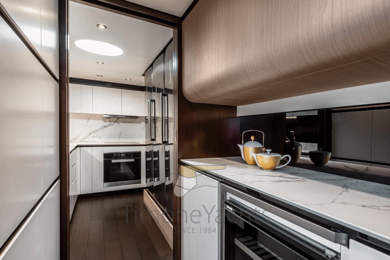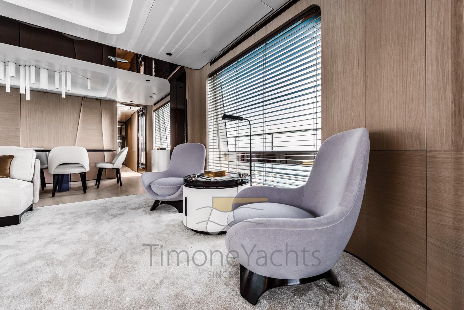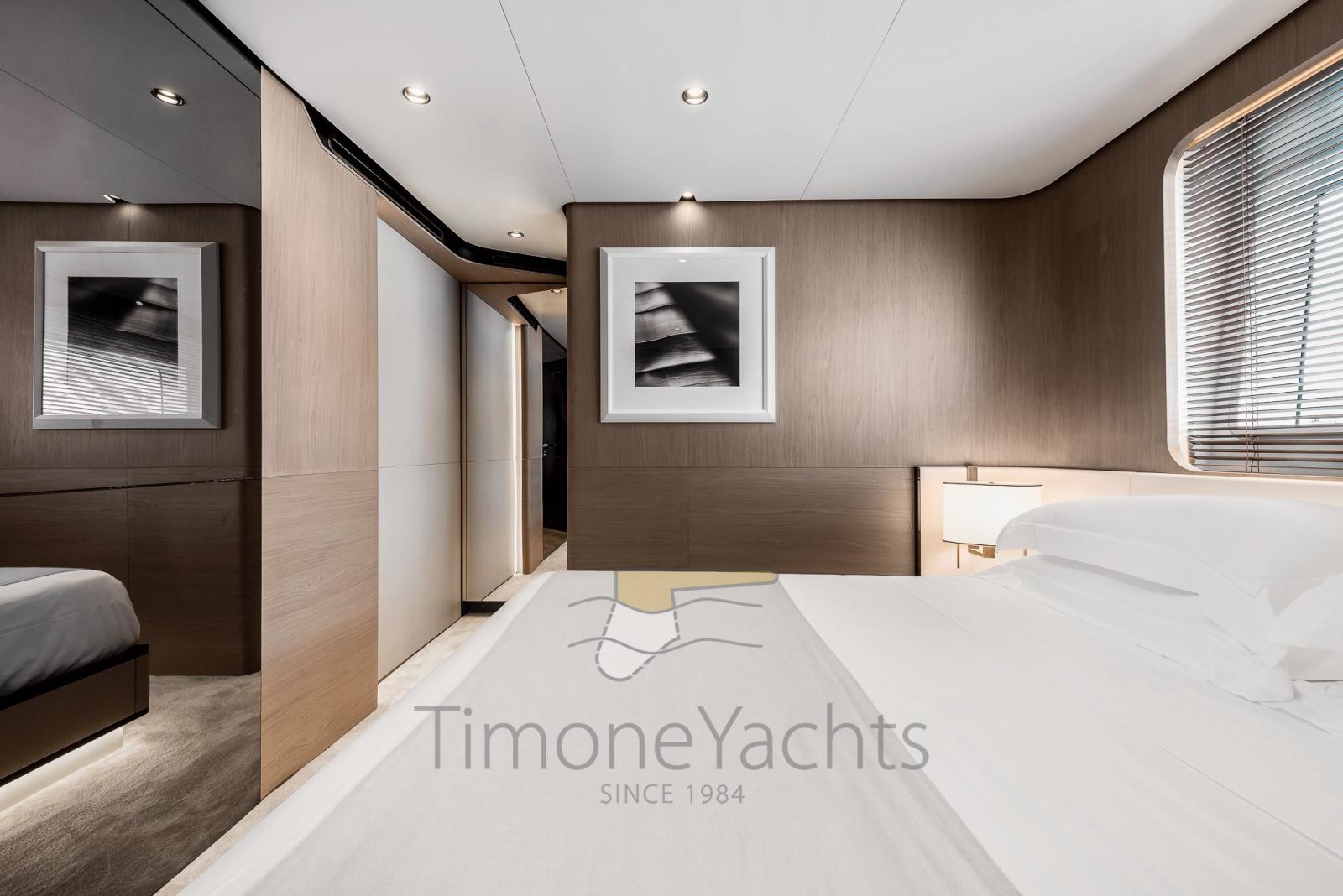 En plus d’être le premier bateau de ce type à proposer une timonerie surélevée, cette création pionnière réinvente les environnements en optimisant l’espace existant, introduisant la suite du propriétaire sur le pont principal et quatre cabines d’accueil sous le pont.