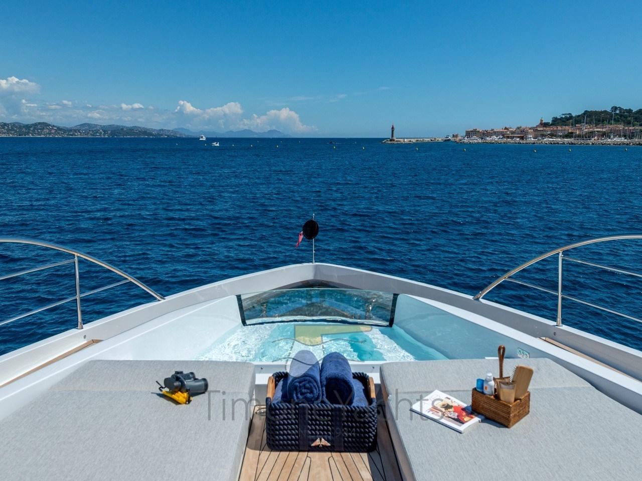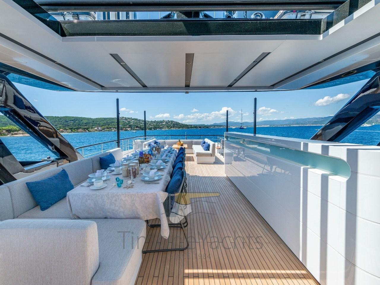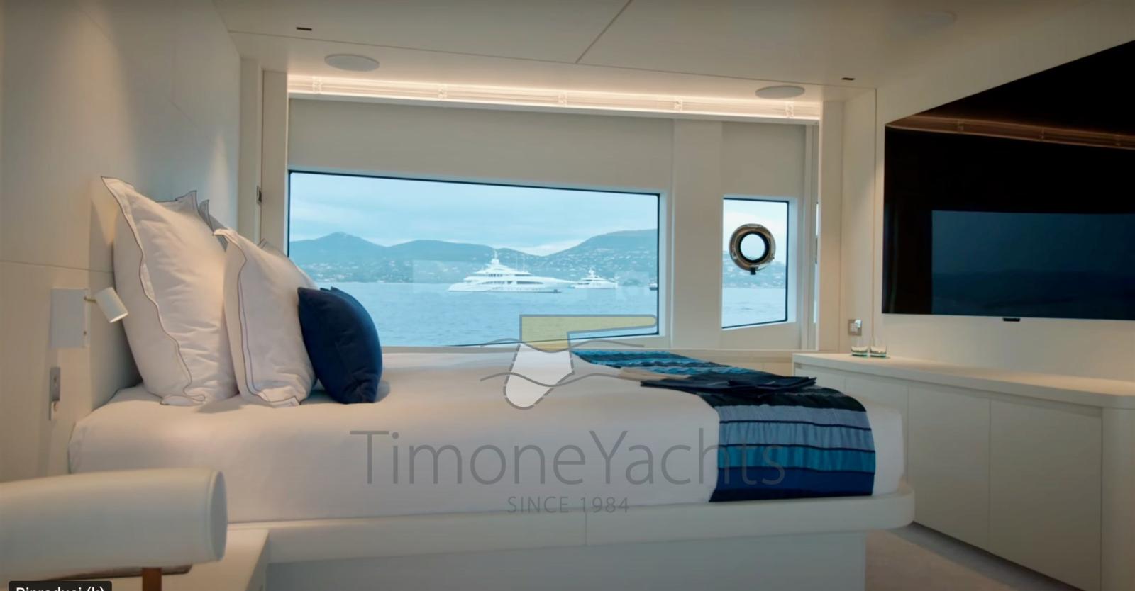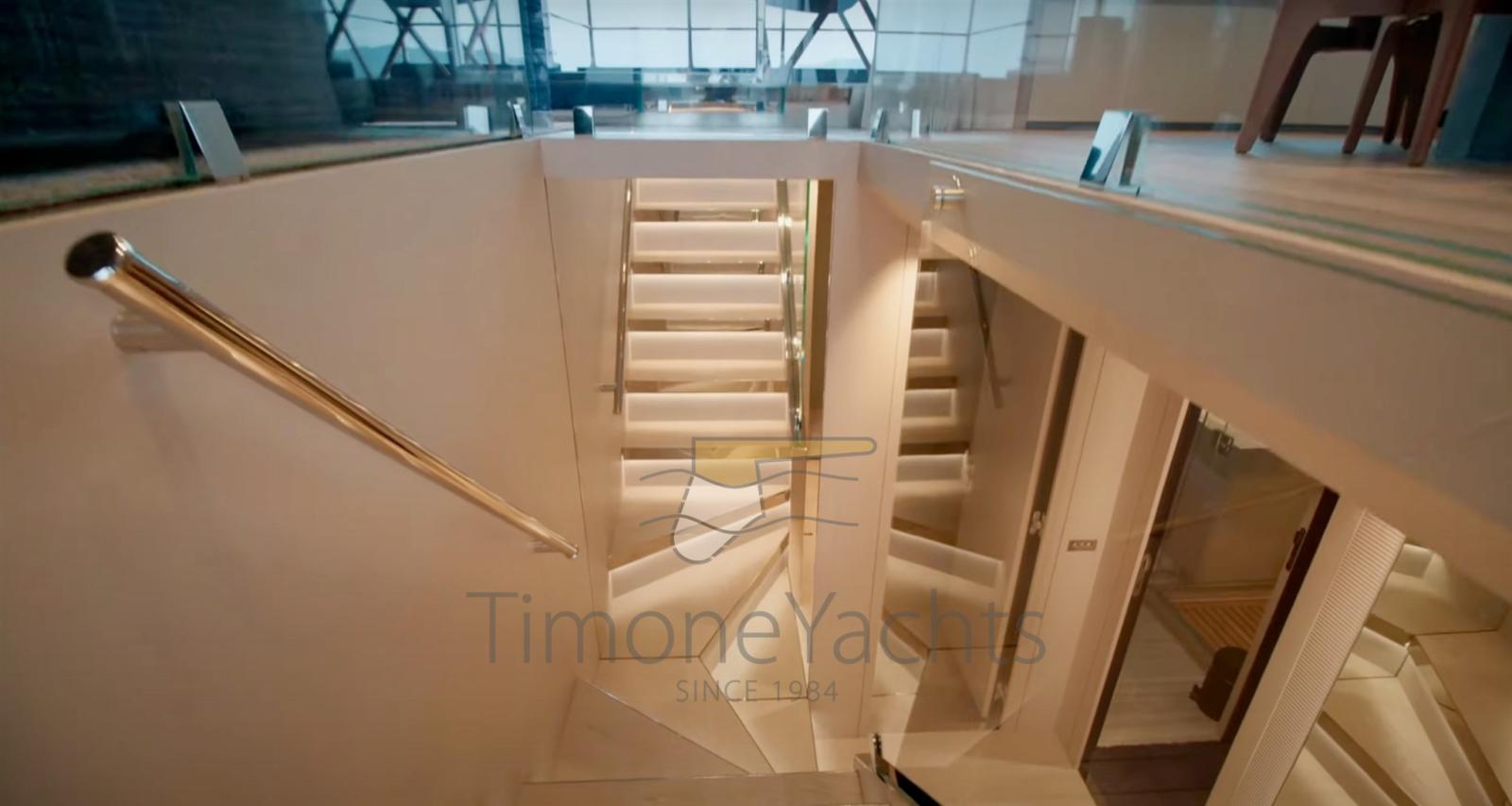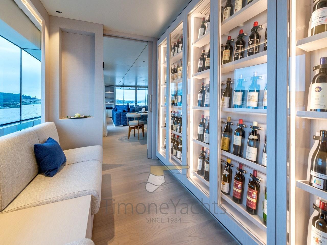 Il offre un intérieur spacieux et lumineux grâce à des fenêtres surdimensionnées et des balcons pliants qui accueillent la lumière naturelle. Une impressionnante cave à vin vitrée relie le salon principal à la suite principale sur le pont principal.