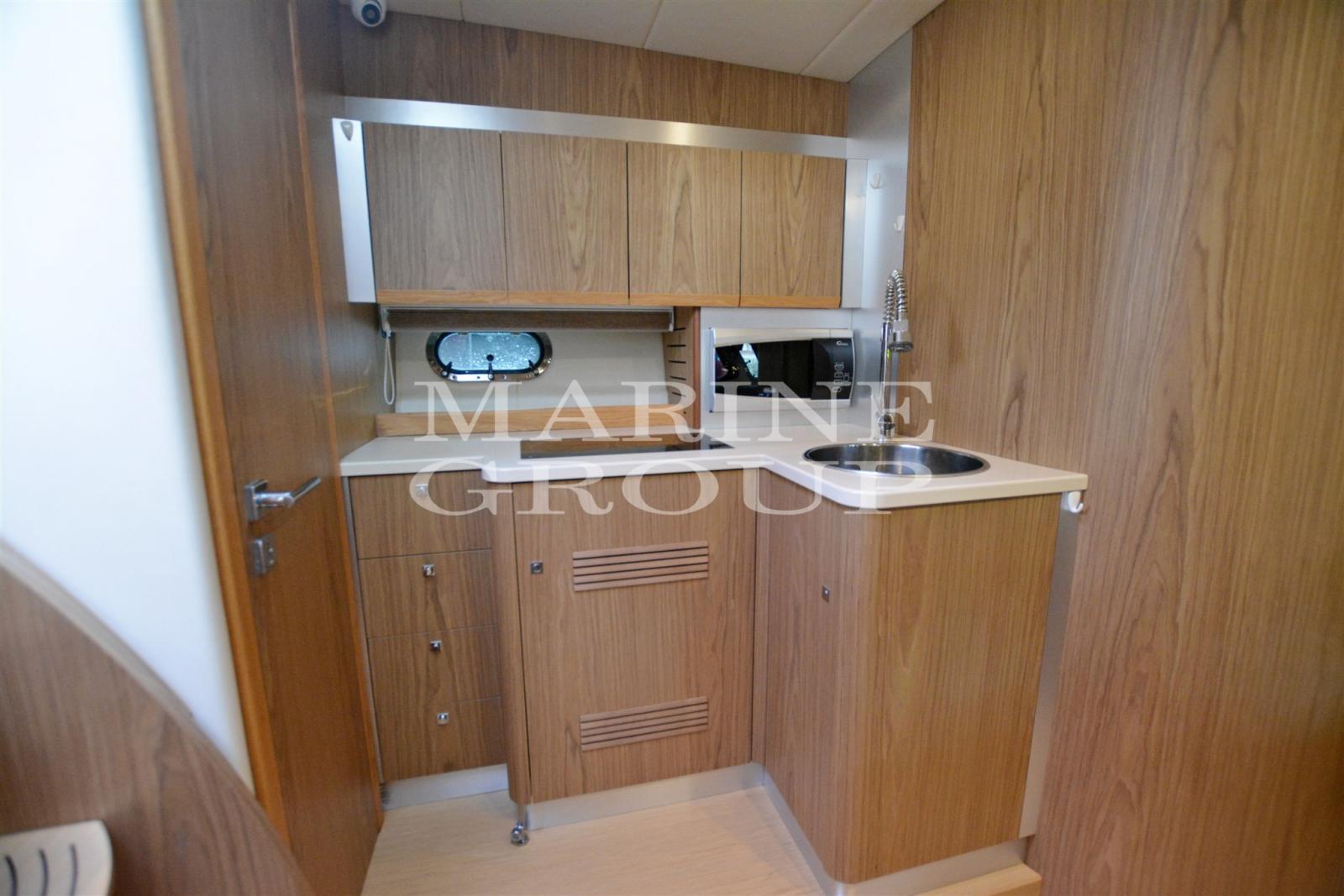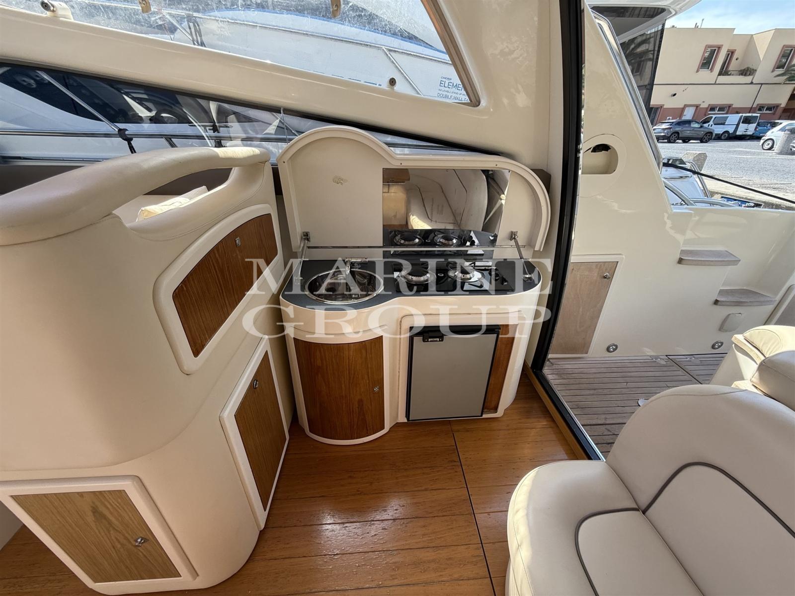 Ouverture du compartiment moteur électrique, Couleur spéciale (rossa), Douche de cockpit, Hard top (elettrico), Lavabo dans le cockpit, Passerelle, Plateforme arrière, Pompe de cale manuelle, Porte latérale, Cockpit en teck, Prise de quai, Guindeau électrique, Echelle de bain, table de cockpit (elettrico), Table pliante de salon, Corne.