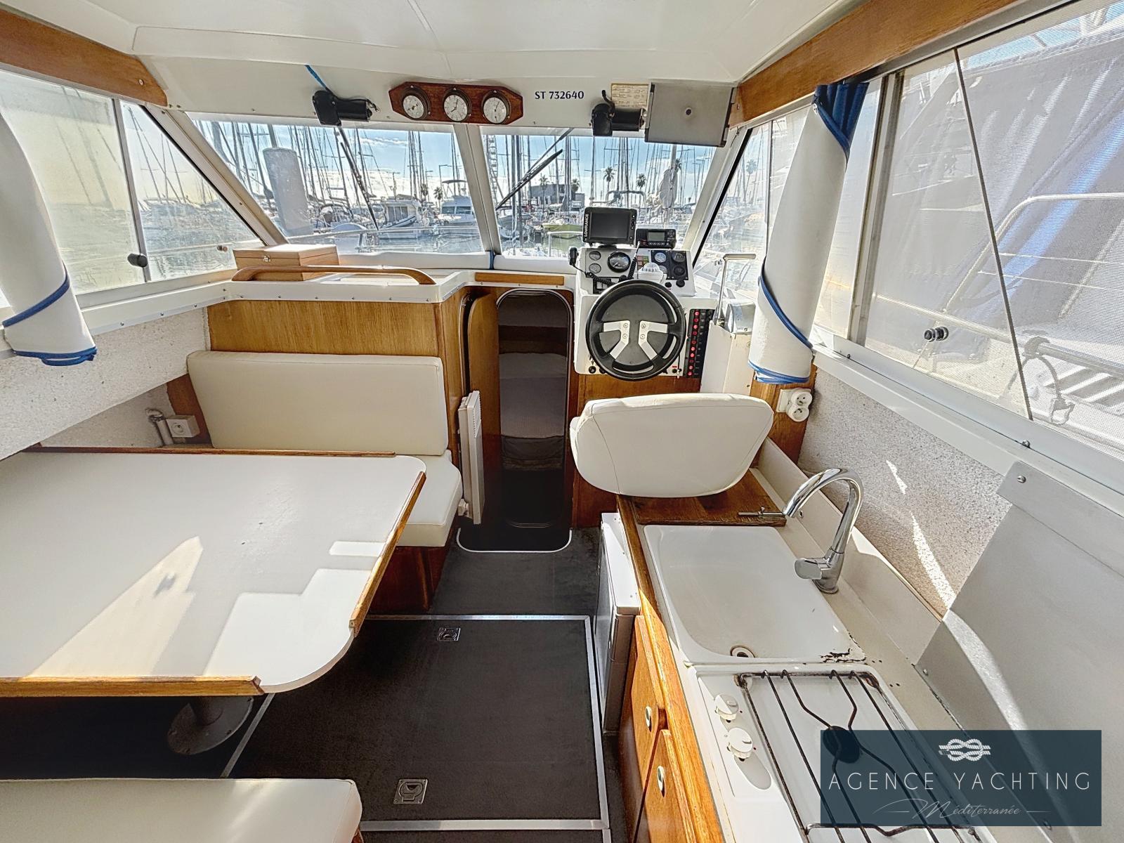 Le Jeanneau Albatross 750 est une vedette habitable appréciée pour son confort et sa fiabilité en navigation. Avec ses lignes classiques et marines, il offre un cockpit convivial ainsi qu’un intérieur fonctionnel pensé pour les croisières côtières. Robuste et bien construit, ce modèle est idéal pour profiter de belles sorties en famille ou entre amis, alliant sécurité, habitabilité et plaisir de navigation.