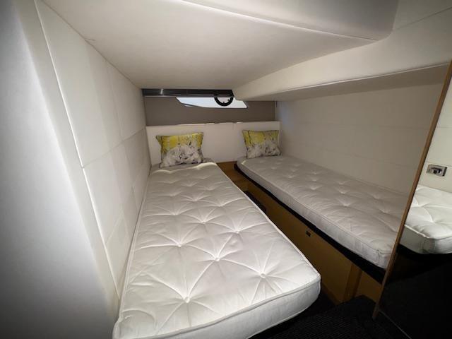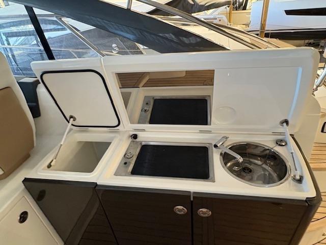 Alarme moteur, Eau sous pression, Douche de cockpit, Hard top, Spots sous-marins, Défenses, Passerelle, Plateforme arrière (affondabile), Cockpit en teck, Prise de quai, Connexion eau sous pression à quai, Guindeau électrique, table de cockpit.