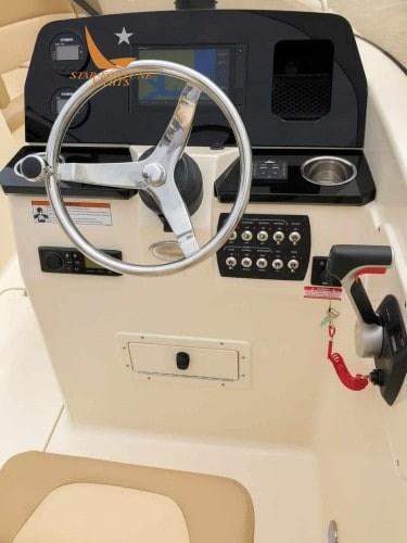 215 Dorado équipé d’une double console avec un beau pare-brise enveloppant sans cadre qui ajoute de l’élégance au bateau.