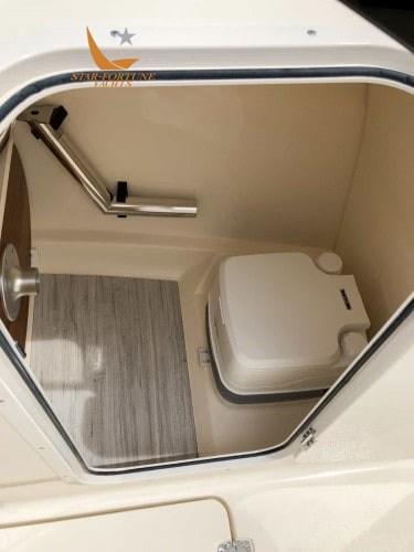 • Détails argentés et fines rayures sur la coque • (10) porte-gobelets en acier inoxydable • Lavage à l’eau brute dans la baignoire en direct • Port combo USB/USB-C et port USB supplémentaire • Stéréo Bluetooth Fusion avec (4) haut-parleurs de 6 po • Pellicule rétractable • Direction hydraulique BayStar (avec 150 ch) • Plates-formes de bain gauche et droite avec échelle • Porte arrière • Éclairage 100 % LED • Accès facile à la salle des systèmes arrière avec cale et couvercle polis • Gel Coat haute qualité • Coque NuV3