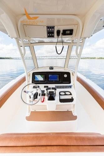 • Cockpit auto-videur • Éclairage de courtoisie LED pour le cockpit • Taquets à ressort en acier inoxydable • Plate-forme de bain entièrement praticable avec tapis en mousse EVA • Sièges avant avec dossiers amovibles et sous rangement • Siège arrière intégré • Aquarium au sol gauche/droit avec pompe à membrane • (4) Porte-cannes à pêche affleurants en acier inoxydable • Réservoir d’appâts à recirculation à l’arrière • Compartiment à cannes sous le mât de misaine (3) • Chargeur de batterie • Lavage de l’ancre à l’eau douce • Treuil vertical avec rouleau d’ancre, ligne d’ancrage et chaîne en acier inoxydable • Porte sur le côté gauche • Volant à poignée en acier inoxydable avec bouton • Boussole • Stéréo Bluetooth Fusion avec (4) haut-parleurs audio JL de 7,7 pouces • Écran Garmin 943XS avec transducteur GT12M HELM • Toit rigide en T enduit de poudre avec pare-brise sans cadre intégré et lance-roquettes® • Poteau d’appui standard (avec station de pêche, Fauteuils de pilotage rabattables et réfrigérateur Igloo - à moins qu’une mise à niveau YETI n’ait été commandée • Ensemble complet de coussins de console et d’ensembles de coussins • Coussins pour les sièges avant gauche et droit • Port combo USB/USB-C et port USB supplémentaire • Feu de navigation • Direction assistée • Direction assistée incluse de série avec l’ensemble moteur • Promenade Seakeeper • Compartiment à piles • Batteries de service et de démarrage • Hublot ouvrant • Console Step-Inside.