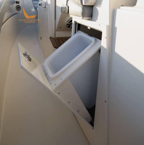 Profitez d’une plate-forme de bain entièrement praticable, d’une échelle de bain Armstrong, d’un compartiment arrière pour poissons/rangements de 60 gallons, d’une installation de lavage en eau douce avec un réservoir de 25 gallons, d’un chargeur de 50 ampères, de lumières télécommandées avec porte-clés, de trois sièges de barre capitaine avec sièges chauffants et coussins rabattables individuels, et d’une table convertible convertible à commande électrique avec Esthec, pour ne citer que quelques-uns des équipements de série.