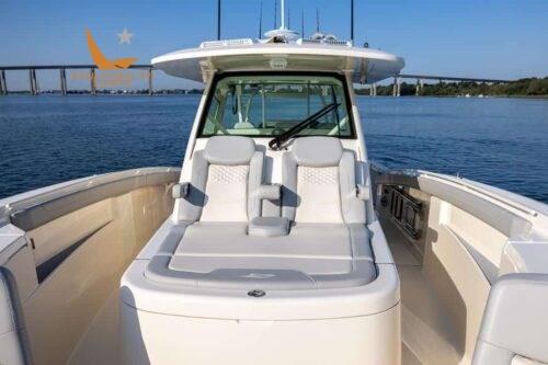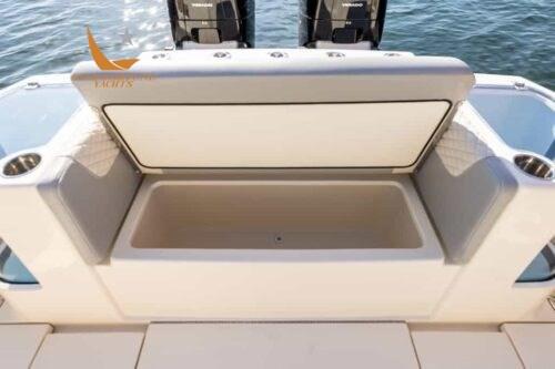 • Coffres de rangement et trappes éclairés par LED • (8) taquets affleurants de 10 po • (10) porte-tiges de mât avant affleurants en acier inoxydable • (4) ensembles Phender Pro = (4) récepteurs et (4) goupilles • Sièges d’étrave à 180 degrés avec dossiers et coffres de rangement • Console d’étrave avec doubles bains de soleil et salon profilé avec coussins, accoudoirs et rangement inférieur • Glacière/boîtes de rangement avant dans le mât avant • Grand compartiment de rangement au milieu du navire • Toit rigide breveté peint sur poudre avec fermeture en verre incurvé • Accès au toit ouvrant coulissant • 3 sièges de barre du capitaine • Siège de salon surélevé face à l’arrière avec machine à glaçons transparente, réfrigérateur à tiroirs ou tiroirs à outils • Rangement pour cannes sous le mât de misaine à l’avant (3) • Salle technique au milieu du navire • Plate-forme de plage à terre • Caisses à poisson avec décharge à membrane par-dessus bord (92 gallons chacune) • Porte d’accès au tableau arrière acrylique • Plate-forme de tableau arrière avec échelle sous-marine Armstrong • (5) Porte-cannes de tableau arrière affleurants • Grand siège arrière avec deux puits d’appâts ventilés à bâbord et à droite • Coque à deux niveaux efficace infusée d’époxy • Zipwakes • Pont auto-videur • (1) Feux de proue à LED et (2) feux de poupe • Système lithium-ion 48V (sélectionnez l’ensemble moteur) • Commutation numérique CZONE • (2) écrans Garmin MFD 8616 avec capacité WiFi • Unité principale Fusion avec capacité Bluetooth (10) Haut-parleurs JL Audio (7,7 M6) (2) Amplificateurs JL Audio (2) Caisson de basses JL Audio 10 » • Antenne AM/FM montée sur le toit rigide • Connexion USB • Lumières de distribution LED à l’avant et (2) à l’arrière dans le toit rigide • Chargeur Xantrex Truecharge 3 • Climatiseur 12 000 BTU • Plaque vitrocéramique à un brûleur • Micro-ondes • Téléviseur LED 32 » avec 2 haut-parleurs • Réfrigérateur à tiroirs • Évier de cuisine • Douche et toilette, lavabo en verre et miroir avec armoire de maquillage • Couchette double convertible (6' 5" de longueur) • Table superposée en corian • Compartiment de rangement vertical en roseau dans la cabine (5) • Éclairage LED • Réservoir de vidange à la mer (16 gal.) • Crédence en acrylique • Tube de lavage d’ancre de proue/treuil • Treuil Lewmar avec commande de gouvernail et commutateurs au pied de proue • Ancre, Chaîne (40 pieds) et ligne (300 pieds) en acier inoxydable Lewmar • Caméra d’ancre à l’avant • Essuie-glace et lavage à l’eau douce (51 gallons) • Tubes rétractables d’eau douce et d’eau brute dans le toit rigide • Feux de navigation • Boussole magnétique Richie • Klaxon • Éclairage de courtoisie à LED avec gradation • Eau chaude • Sièges de barre chauffants • Seakeeper 4.5