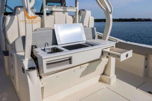 Bien qu’il regorge d’équipements de série (comme le stabilisateur gyroscopique SeaKeeper), les options disponibles sont nombreuses.