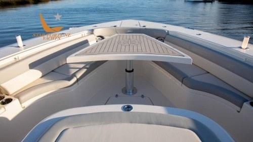 • Compartiments de rangement et trappes éclairés par LED • (8) Taquets affleurants avec montage rétractable • (10) Porte-cannes affleurants en acier inoxydable • (4) Phender Pro - (4) récepteurs et (4) goupilles • Volant Edson en acier inoxydable • Banc d’étrave avec rangement et compartiment de rangement • Boîte de rangement à sec sur la terrasse avant • Compartiments de rangement avant avec rangement et compartiment de rangement avec station de charge • Toit rigide breveté enduit de poudre avec loquet en verre incurvé® • Trappe d’accès au toit rigide • (3) sièges de barre du capitaine et sièges de la deuxième rangée • Salle des systèmes sous le pont arrière • Compartiments à poissons au sol à gauche et à droite avec échappement à membrane par-dessus bord (92 gallons chacun) • Pont arrière complet avec échelle de plongée Armstrong • Plate-forme de bain en teck synthétique, porte arrière, table d’étrave, marchepied de gouvernail et repose-pied de gouvernail • Coque à double marche efficace en fibre de carbone et infusée d’époxy • Zipwakes • Générateur de 8 kW avec réservoir de diesel de 26 gallons • Commutation numérique CZONE • (3) écrans Garmin 8616 avec capacité WIFI • Unité principale Fusion avec capacité Bluetooth - (10) Haut-parleurs JL Audio 7,7 » - (2) Haut-parleurs JL Audio 8,8 » - (2) Amplificateurs MC JL Audio - (1) Caisson de basses JL Audio 10 » • Antenne AM/FM montée sur le toit rigide • Prise 12V, connexion USB • Bobine de cordon d’alimentation à quai Glendinning de 50 pieds 50A • Prise secteur dans le pilier incliné • (1) lumières LED avant et (2) lumières arrière dans le toit rigide • Batteries AGM pour les services et les moteurs • Climatisation de 12 000 BTU • Surface de cuisson en vitrocéramique à un brûleur • Micro-ondes • Téléviseur LED 32 pouces avec haut-parleurs • Réfrigérateur à tiroirs • Évier de cuisine • Espace douche fermé • Espace avec Toilette pleine grandeur et évier chaud/froid • Hublot sur les côtés gauche et droit avec rideau d’intimité • Coin salon avec couchette convertible • Éclairage LED • Réservoir de vidange de 18 gallons avec drain par-dessus bord • Réservoir de carburant de 545 gallons • Tuyau de lavage du treuil d’ancre d’étrave • Treuil Lewmar avec commande de barre et commutateurs au pied d’étrave • Ancre, Chaîne (40 pieds) et ligne (300 pieds) en acier inoxydable Lewmar • Caméra d’ancre d’étrave • Table d’étrave électronique avec remplissage de coussin • Chauffe-eau • Essuie-glace et lavage à l’eau douce (66 gallons) • Tuyaux d’eau douce et d’eau brute rétractables dans le toit rigide • Feux de navigation • Boussole magnétique Richie • Klaxon • Éclairage de vanité à LED avec gradation • Sièges de barre chauffants à l’avant et aux sièges de la deuxième rangée • Système de stabilisateur gyroscopique Seakeeper 4.5 • Siège arrière rabattable avec baquet à appâts fendus et porte de passage sur le tableau arrière • - Réfrigérateur à tiroirs en fibre de verre à commande électrique • Cuisine d’été avec gril, évier et planche à découper • Tabourets de bar pivotants • Plate-forme hydraulique standard sur le côté