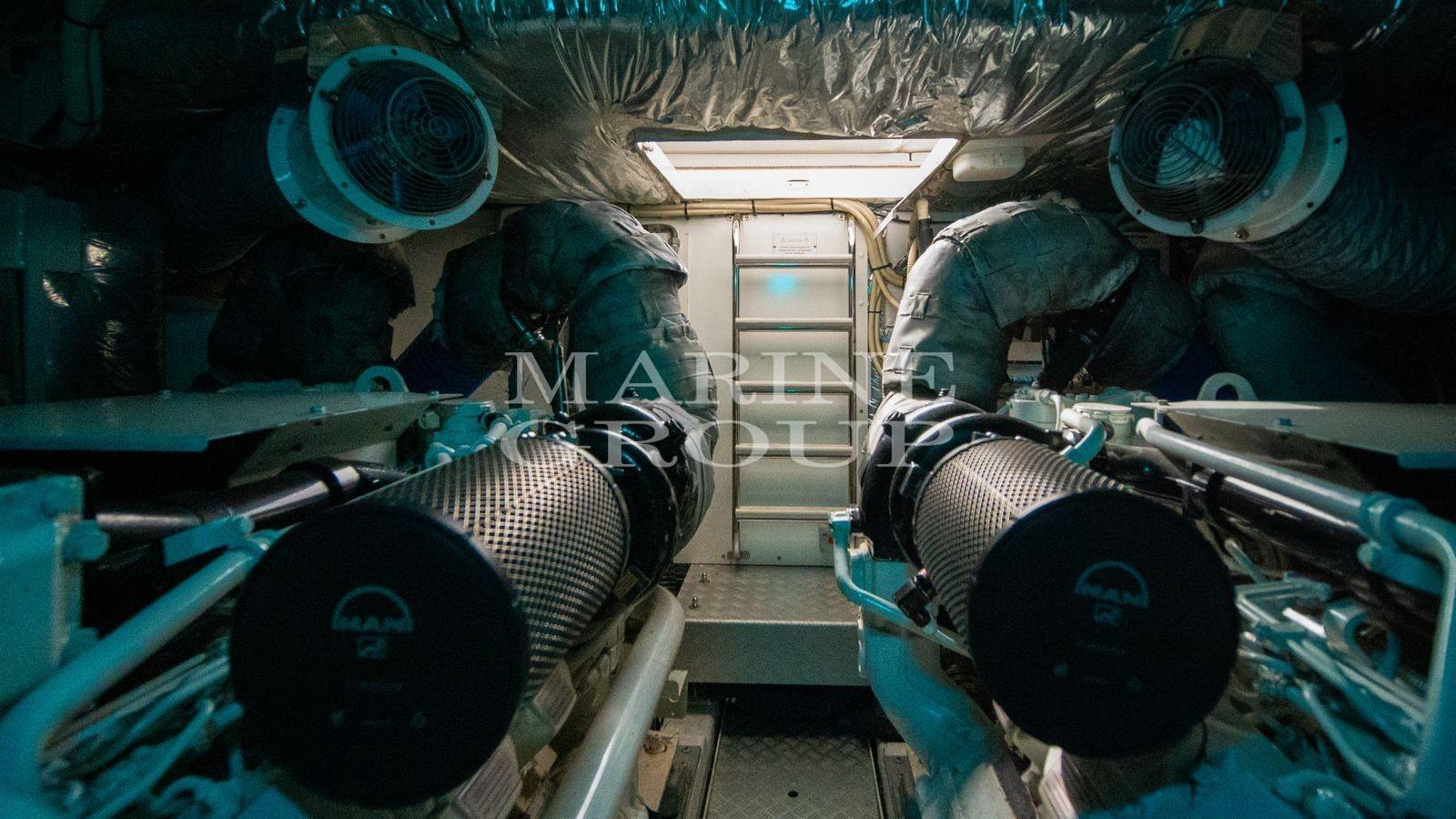 Refit complet par Abitami en 2024. Grand salon avec canapés en cuir - Cuisine sur le pont principal avec grand réfrigérateur/congélateur, four et lave-vaisselle - Dinette avec table à manger interne - Cabine principale au milieu du navire avec lit double et salle de bain attenante - Cabine VIP à l’avant avec lit double et salle de bain attenante - Cabine d’invités avec lits simples au sol et accès direct à la salle de bain - Cabine d’invités avec lits superposés - Salle de bain complète de la cabine d’invités - Cabine de l’équipage à l’arrière avec deux couchettes et salle de bain complète séparée.