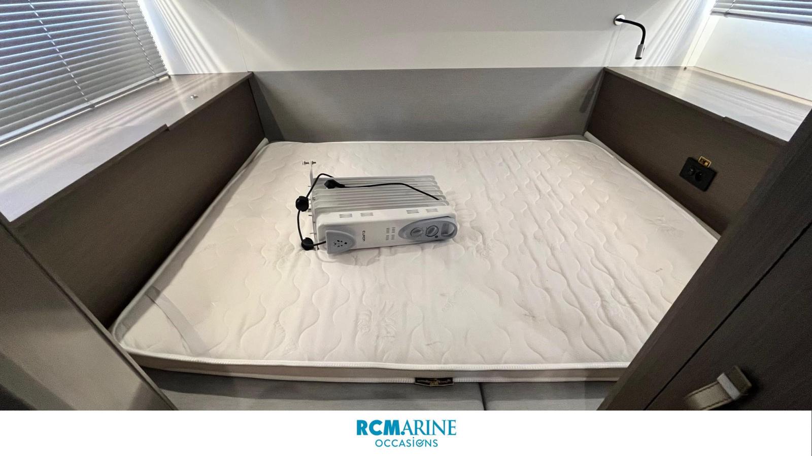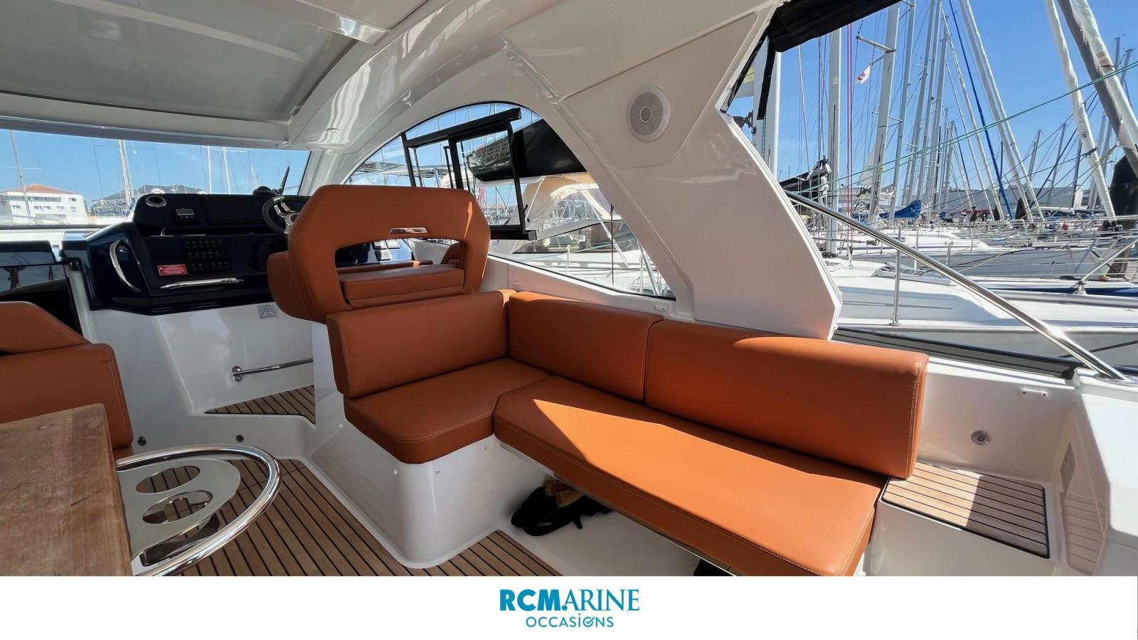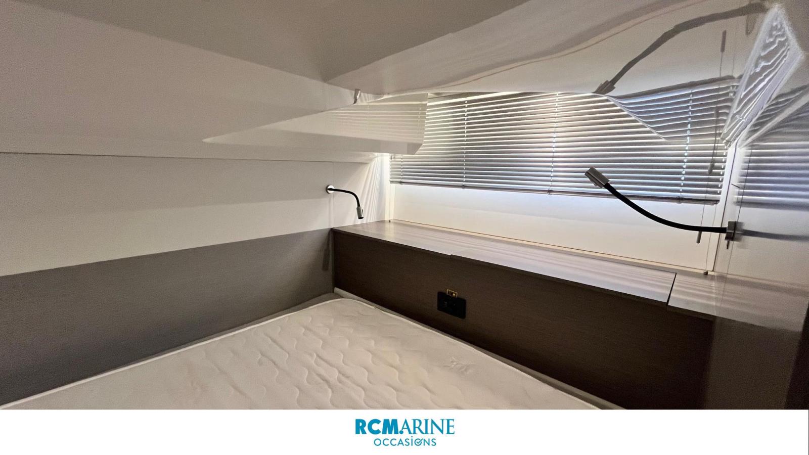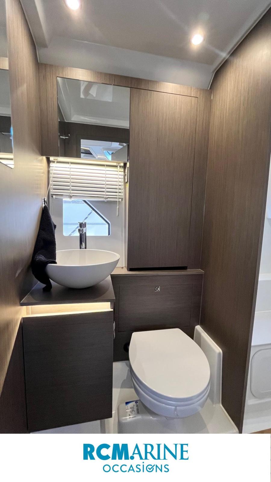 Parmis les options, nous retrouvons à bord un cockpit full teck, une plateforme de bain XL, une cuisine extérieur avec réfrigérateur, évier, plancha. Taud de fermeture arrière, bain de soleil avant, moteur volvo équipé dujoystick de manoeuvre, double cabine, carré et cuisine intérieur, écran multifonction GARMIN....