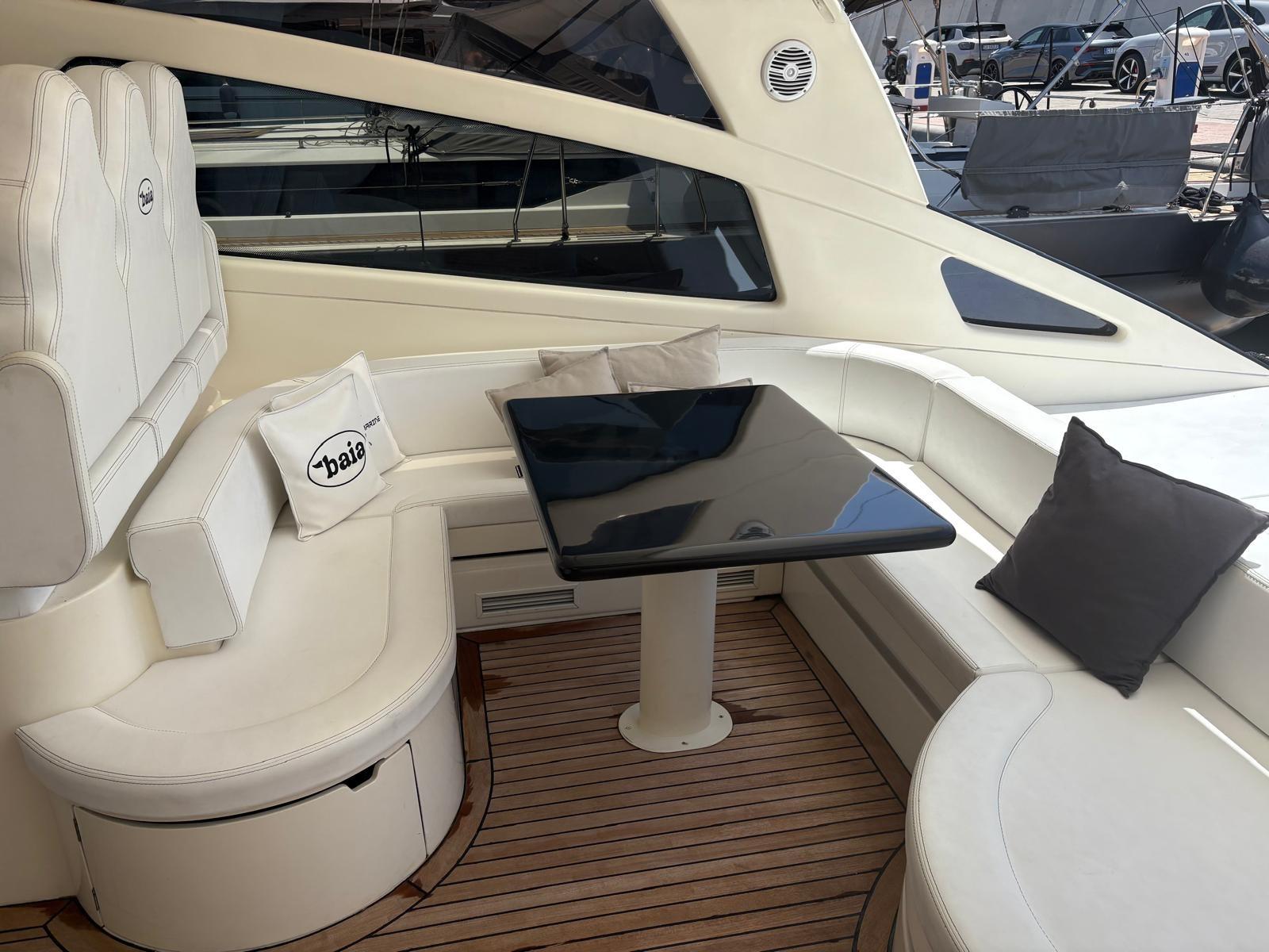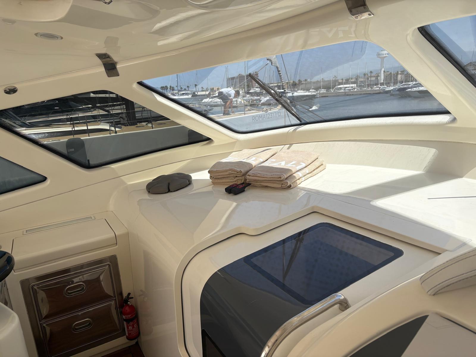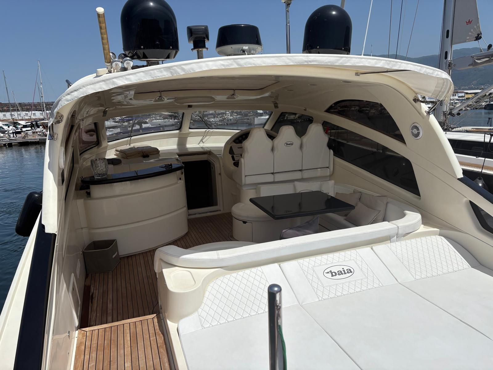 Eau sous pression, Couleur spéciale, Douche de cockpit, Flaps hydrauliques, Hard top, Passerelle, Plateforme arrière, Cockpit en teck, Prise de quai, Rollbar, Guindeau électrique, Echelle de bain, table de cockpit.