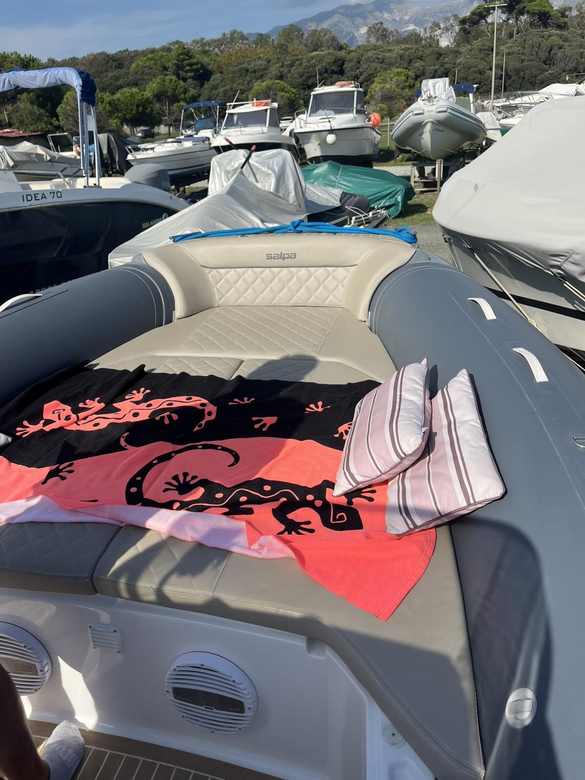 Eau sous pression, 2 Batteries, Douche de cockpit, Plateforme arrière, Cockpit en teck, Rollbar, table de cockpit.