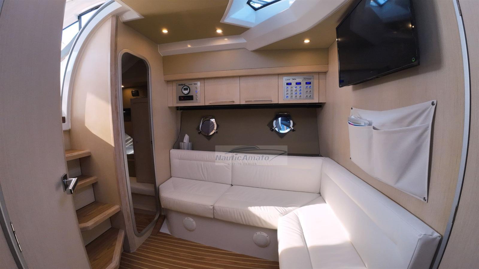 Alarme moteur, Alarme de pompe de cale, Ouverture du compartiment moteur électrique, Eau sous pression, Radeau de sauvetage (revisionata nel 2024), Douche de cockpit, Flaps hydrauliques, Hard top, Indicateurs de flaps, Lavabo dans le cockpit, Éclairage de courtoisie, Spots sous-marins, Défenses, Passerelle (idraulica 2023), Pompe de cale automatique, Pompe de cale manuelle, Cockpit en teck, Prise de quai, Guindeau électrique, Echelle de bain, table de cockpit.