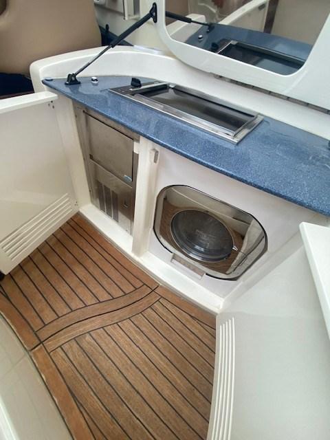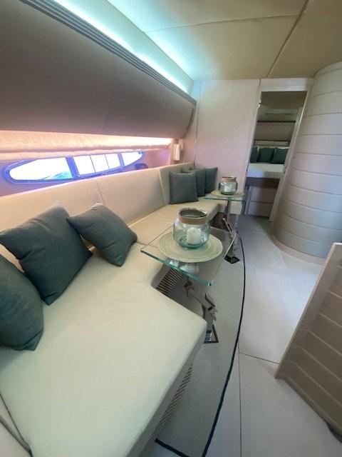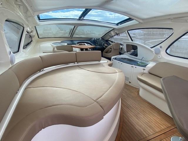 Alarme moteur, Alarme de pompe de cale, Ouverture du compartiment moteur électrique, Eau sous pression, Douche de cockpit, Phare de poursuite, Flaps hydrauliques, Garage à annexe, Hard top, Extincteur(s) fixe(s), Compresseur de plongée, Indicateurs de flaps, Lavage de chaine, Lavabo dans le cockpit, Éclairage de courtoisie, Spots sous-marins, Passerelle (idraulica), Plateforme arrière, Pompe de cale automatique, Pompe de cale manuelle, Cockpit en teck, Prise de quai, Connexion eau sous pression à quai, Onduleur, Guindeau électrique, Echelle de bain, table de cockpit, Annexe, Corne, 2 Winch électrique arrière.