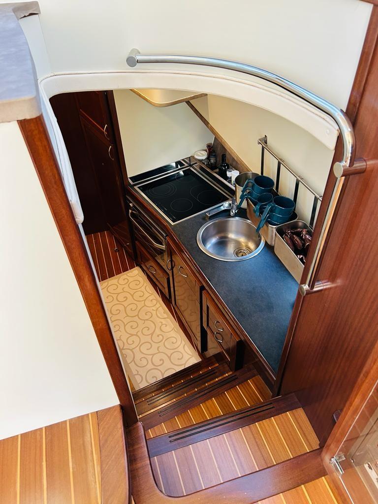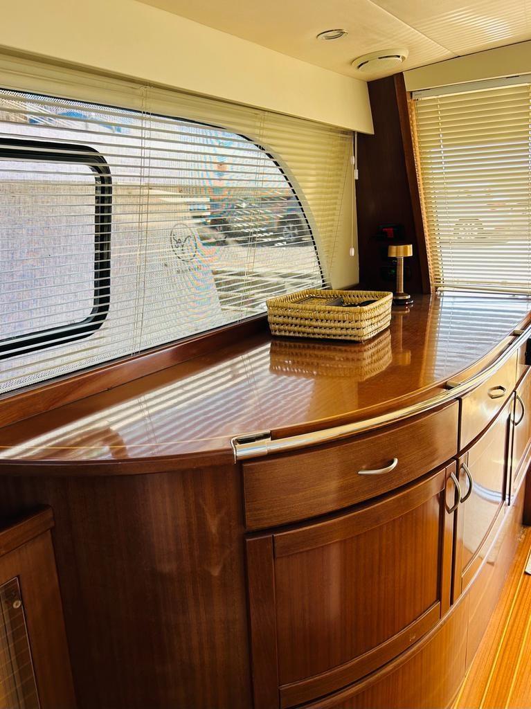 Alarme moteur, Alarme de pompe de cale, Eau sous pression, Passavant en teck, Couleur spéciale, 2 Douche de cockpit, Flaps électriques, Hard top, Éclairage de courtoisie, Spots sous-marins, Passerelle, Plateforme arrière, Pompe de cale automatique, Porte latérale, Cockpit en teck, Prise de quai, Onduleur, Guindeau électrique, Echelle de bain, table de cockpit, Corne, 2 Winch électrique arrière.