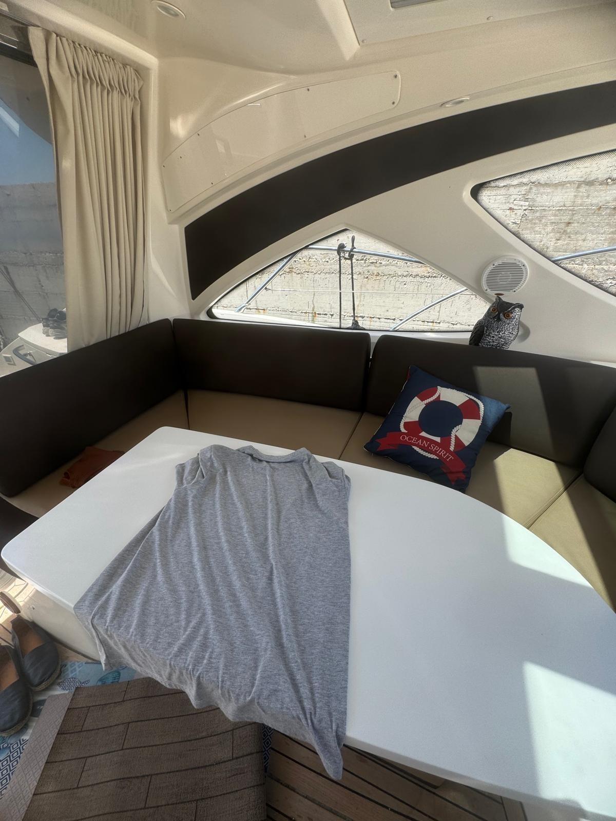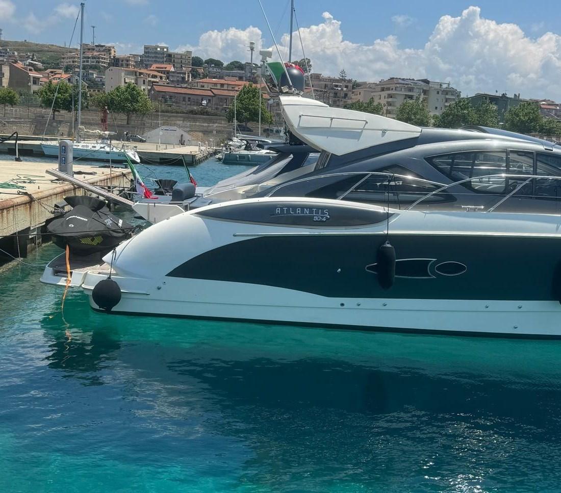 Alarme moteur, Alarme de pompe de cale, Eau sous pression, Couleur spéciale (WRAPPING), Douche de cockpit, Phare de poursuite, Flaps électriques, Hard top, Extincteur(s) fixe(s), Indicateurs de flaps, Lavabo dans le cockpit, Éclairage de courtoisie, Passerelle, Plateforme arrière (ELETTROIDRAULICA), Pompe de cale automatique, Pompe de cale manuelle, Porte latérale, Cockpit en teck, Prise de quai, Onduleur, Rollbar, Guindeau électrique, Echelle de bain, table de cockpit, Table pliante de salon, Filières avec sortie latèrale, Corne.