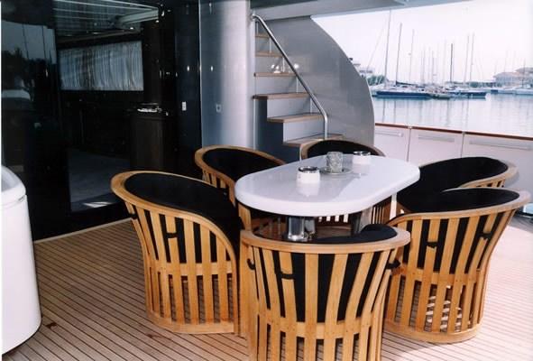 Alarme gaz, Alarme moteur, Alarme de pompe de cale, Eau sous pression, Système de vidange, Passavant en teck, Couleur spéciale, Douche de cockpit, Flaps hydrauliques, Grue de flybridge, Extincteur(s) fixe(s), Indicateurs de flaps, Lavage de chaine, Éclairage de courtoisie, Passerelle, Plateforme arrière, Pompe de cale automatique, Porte latérale, Cockpit en teck, Prise de quai, Guindeau Hydraulique, Echelle de bain, Stabilisateurs, table de cockpit, Annexe, Winch électrique arrière, Winch électrique avant.