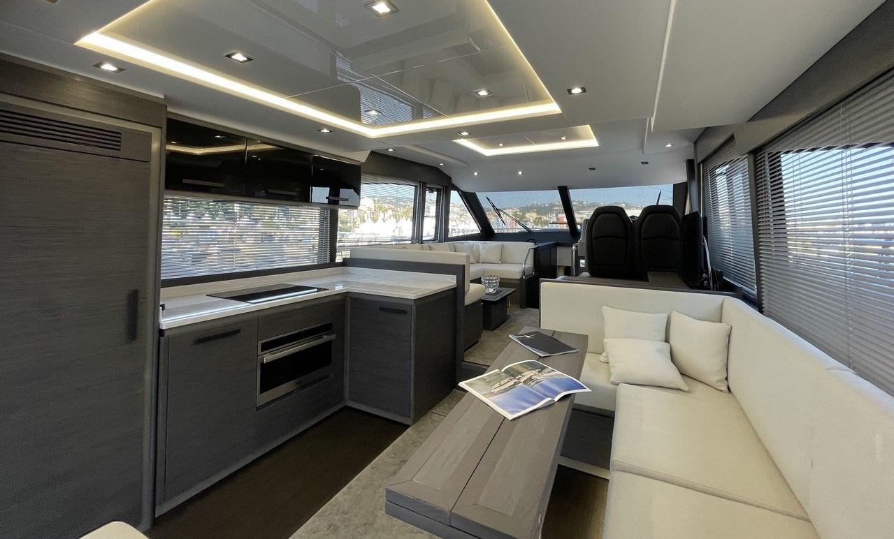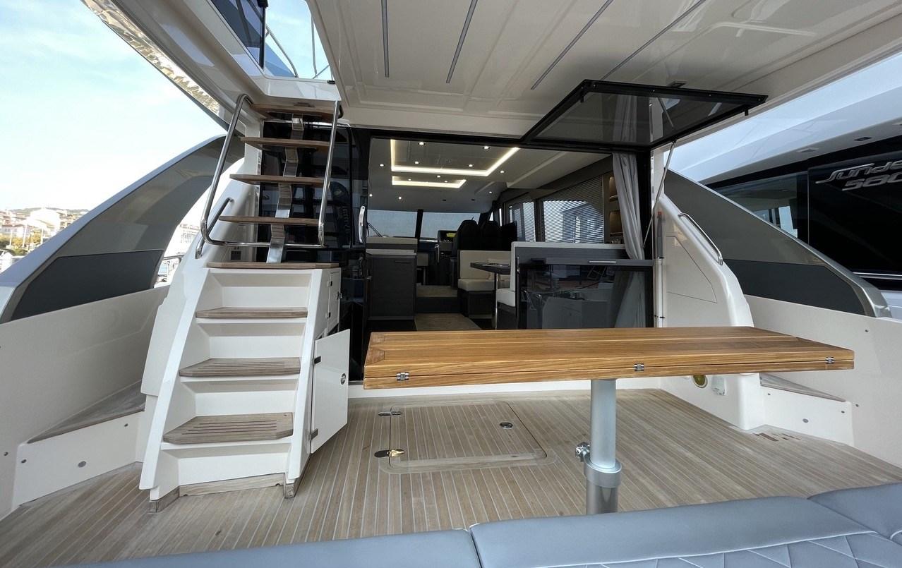 Alarme moteur, Alarme de pompe de cale, Eau sous pression, Trim hydraulique, Passavant en teck, Douche de cockpit, Phare de poursuite, Flaps électriques, Spots sous-marins, Passerelle, Pompe de cale automatique, Porte latérale, Porte latérale, Cockpit en teck, Prise de quai, Connexion eau sous pression à quai, Rollbar, Guindeau électrique, Stabilisateurs, table de cockpit, Winch électrique arrière, Winch électrique avant.
