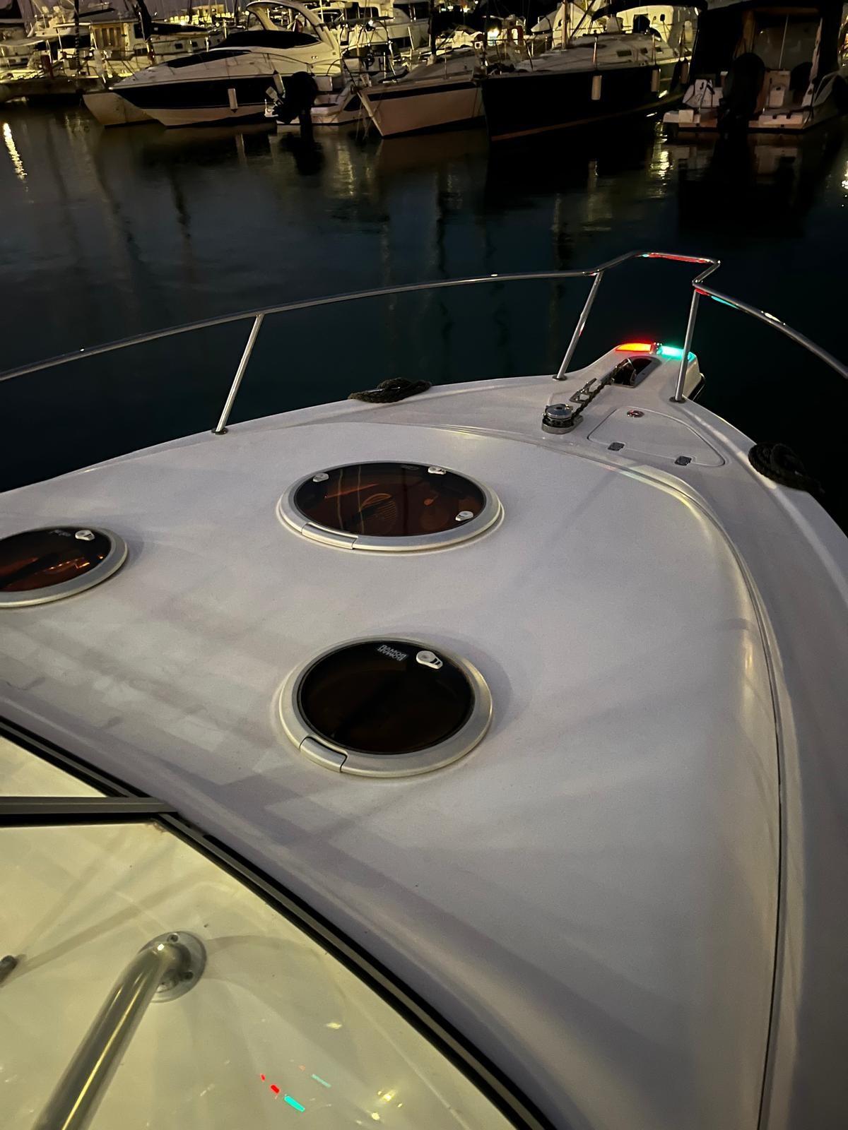 Alarme moteur, Eau sous pression, Couleur spéciale, Douche de cockpit, Lavabo dans le cockpit, Éclairage de courtoisie, Pompe de cale automatique, Prise de quai, Guindeau électrique, Table pliante de salon, Corne.