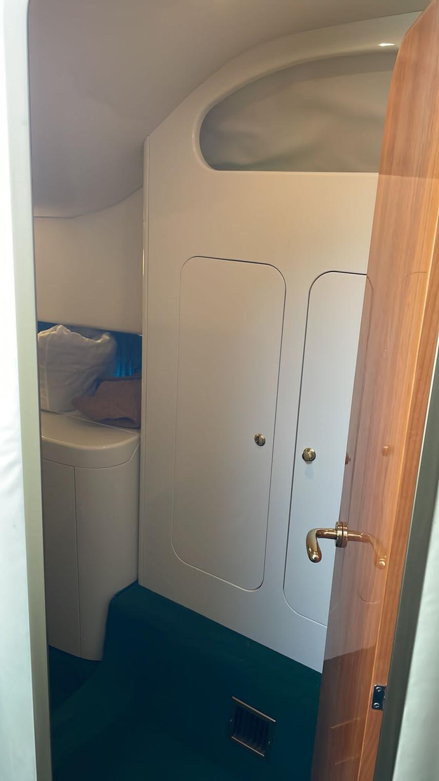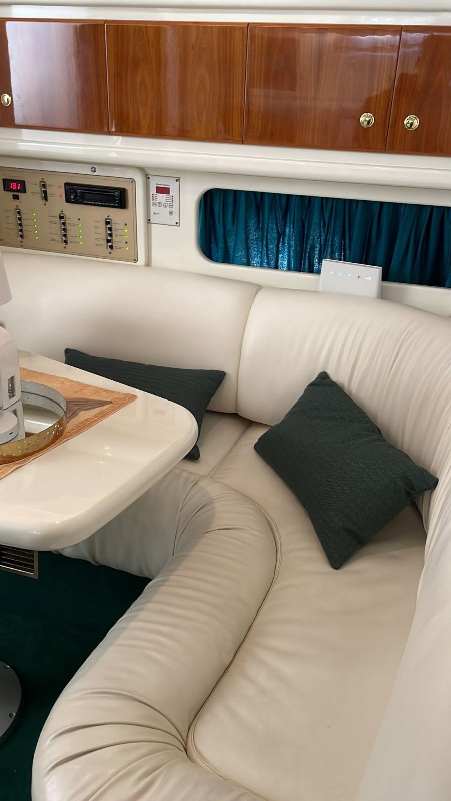 Alarme gaz, Alarme moteur, Alarme de pompe de cale, Eau sous pression, Douche de cockpit, Flaps électriques, Extincteur(s) fixe(s), Passerelle, Plateforme arrière, Pompe de cale automatique, Cockpit en teck, Prise de quai, Onduleur, Rollbar, Guindeau électrique, Echelle de bain, table de cockpit, Corne, Winch électrique avant.