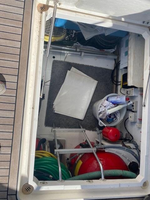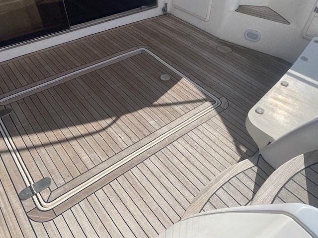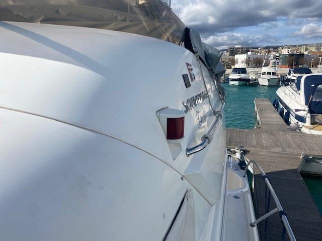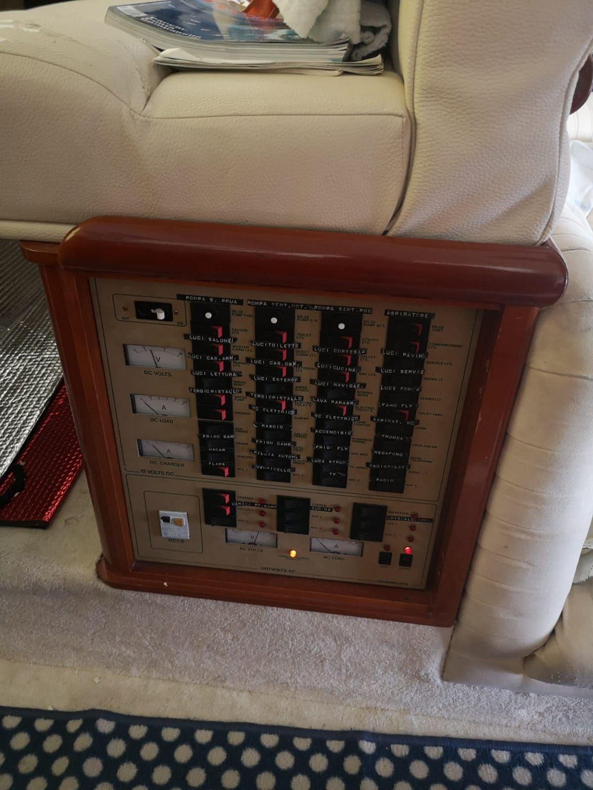 Alarme gaz, Alarme moteur, Alarme de pompe de cale, Eau sous pression, Douche de cockpit, Flaps électriques, Extincteur(s) fixe(s), Éclairage de courtoisie, Spots sous-marins, Passerelle, Plateforme arrière, Pompe de cale automatique, Pompe de cale manuelle, Cockpit en teck, Prise de quai, Onduleur, Rollbar, Guindeau électrique, Echelle de bain, Corne.
