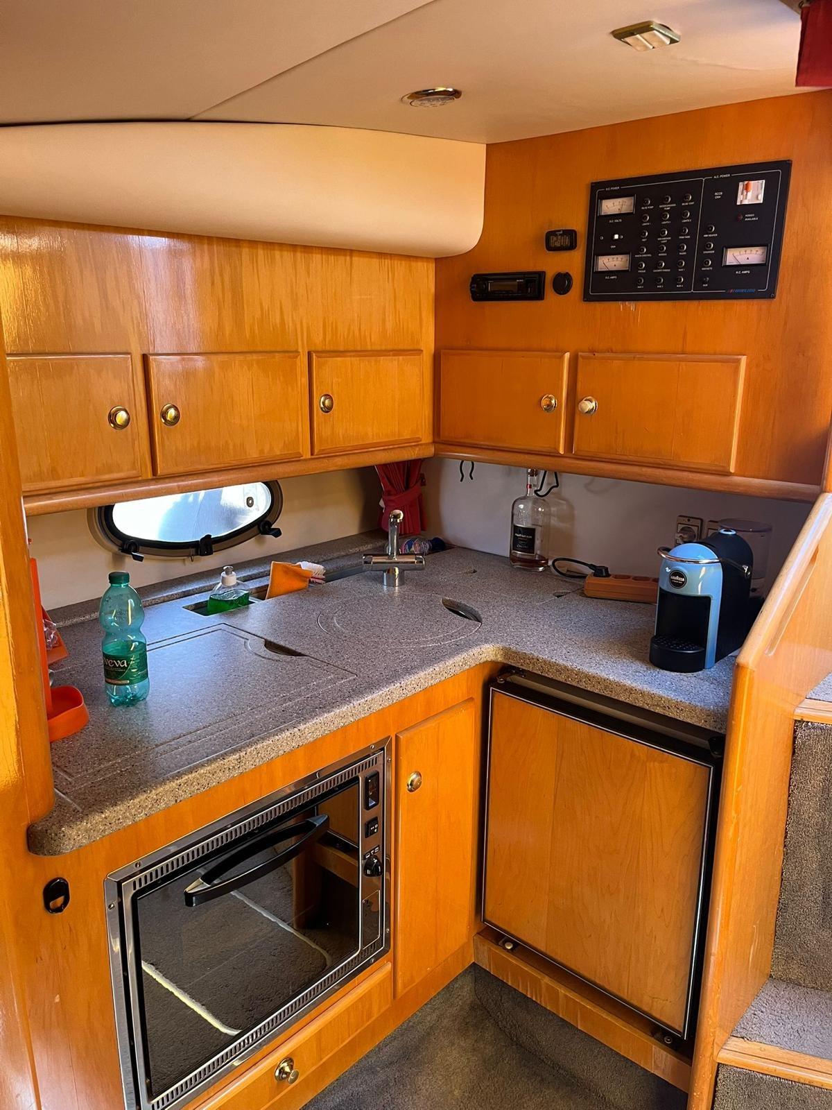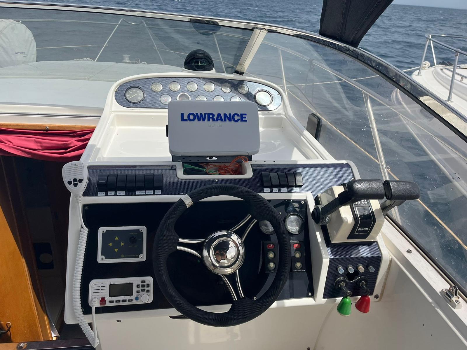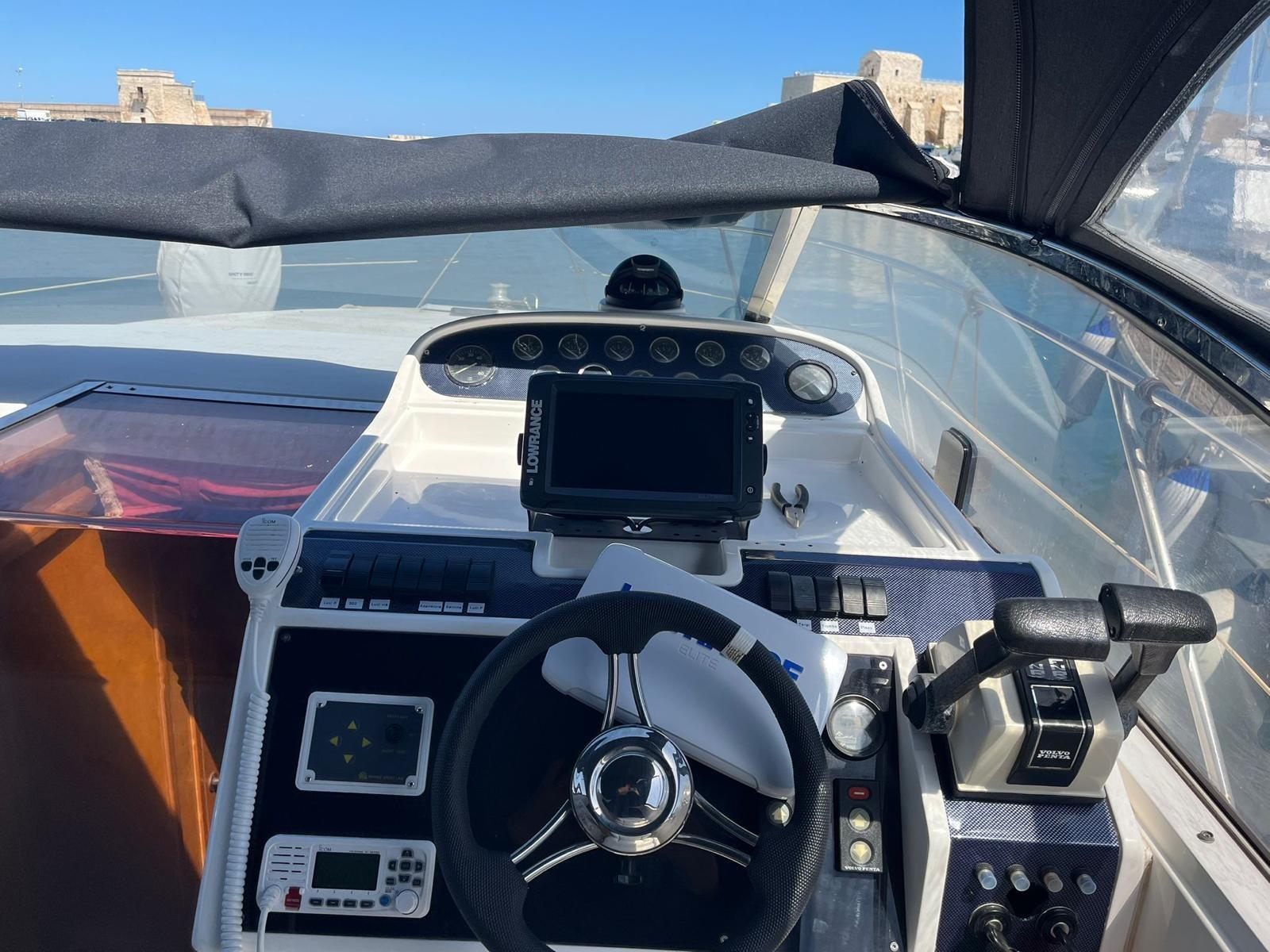 Alarme moteur, Alarme de pompe de cale, Eau sous pression, 2 Batteries (2024), Douche de cockpit, Flaps hydrauliques, Indicateurs de flaps, Plateforme arrière, Pompe de cale automatique, Prise de quai, Connexion eau sous pression à quai, Rollbar, Guindeau électrique, Echelle de bain, table de cockpit, Table pliante de salon.